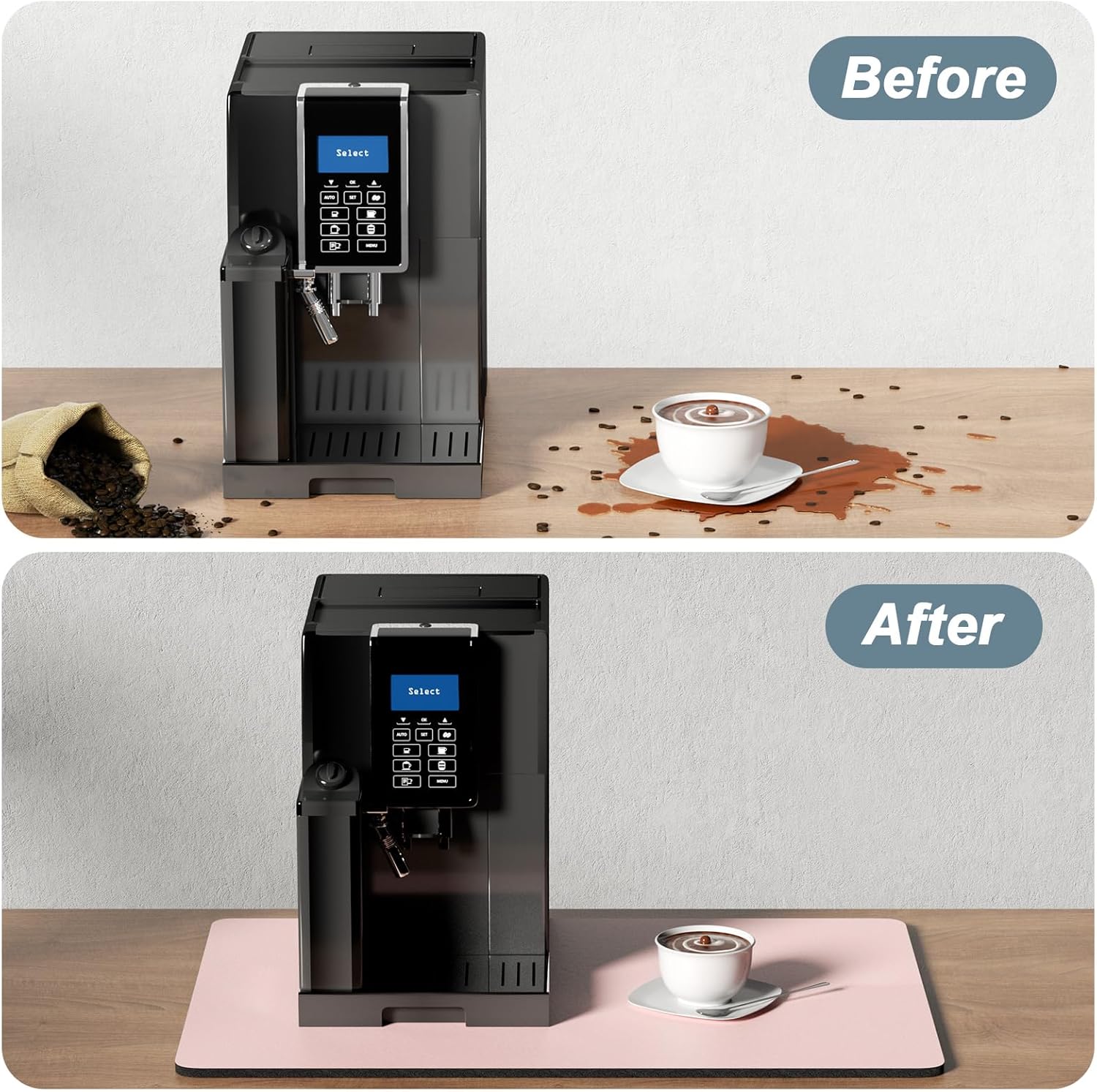 - Easy to Clean: The coffee bar mats for countertop can be cleaned with hand or machine to remove stains, up to 91% porosity material allows coffee bar mats to dry quickly without a machine