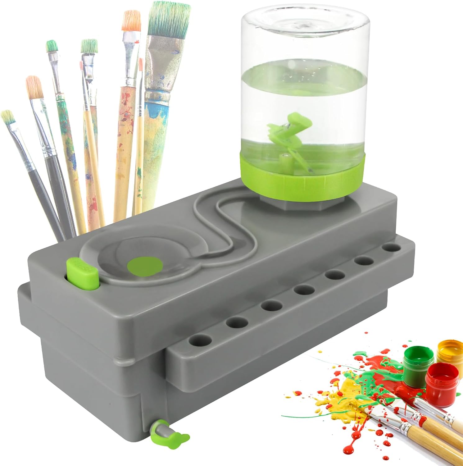 Brush Rinser Set Paint Cleaning Tools Makeup Brush Cleaner Machine, Paint Brush Cleaner Brush Rinser Running Water Circulation Paint Brush Cleaner (Grey Green)