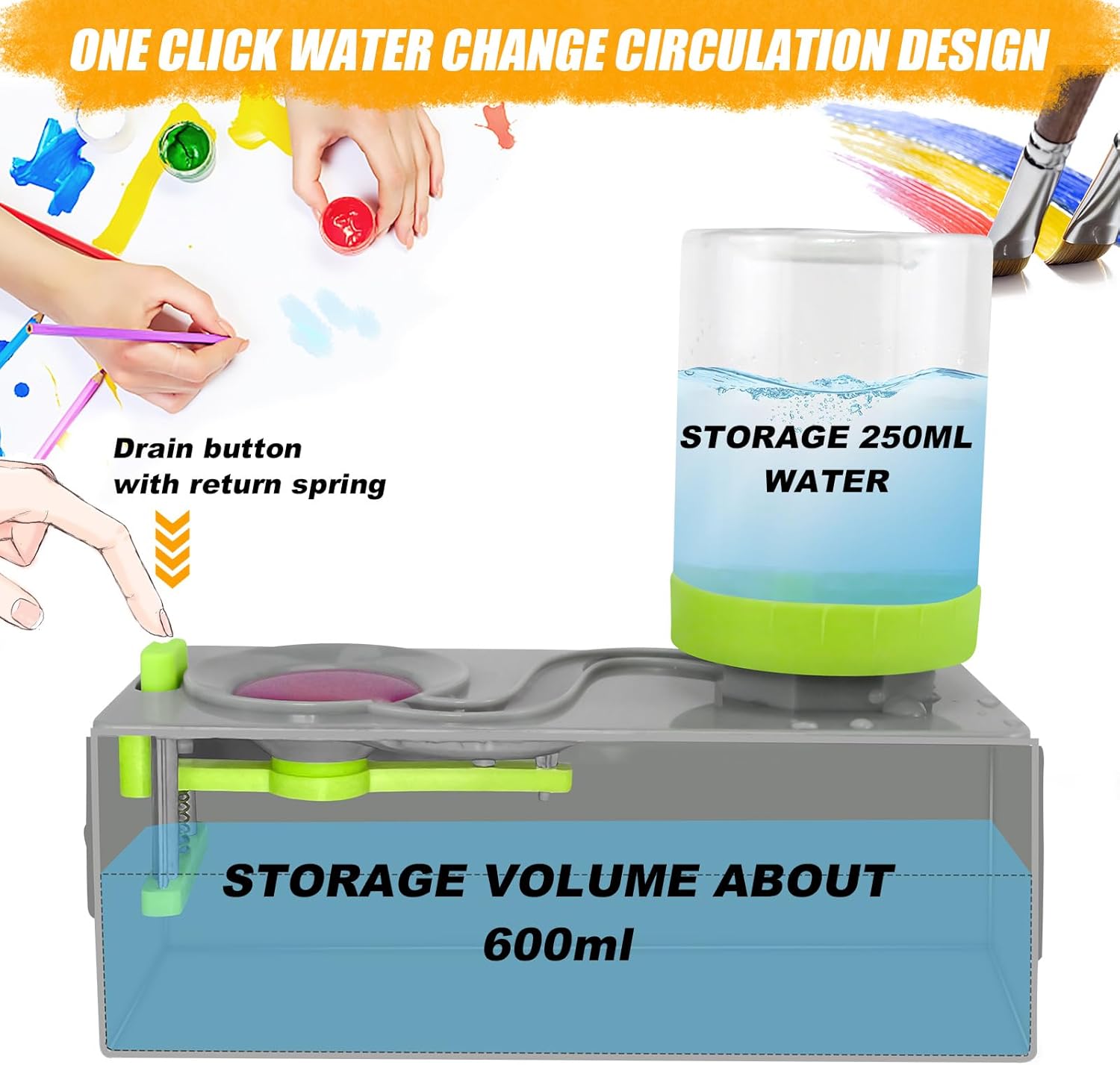 - 【Paint Brush Rinser Pen Cleaner】Tap Water Circulation Design: The brush rinser is a unique oil brush bristle cleaner. You can recycle dirty water at the touch of a button and let clean water flow out for reuse. Paint brush cleaner lets you focus more on painting