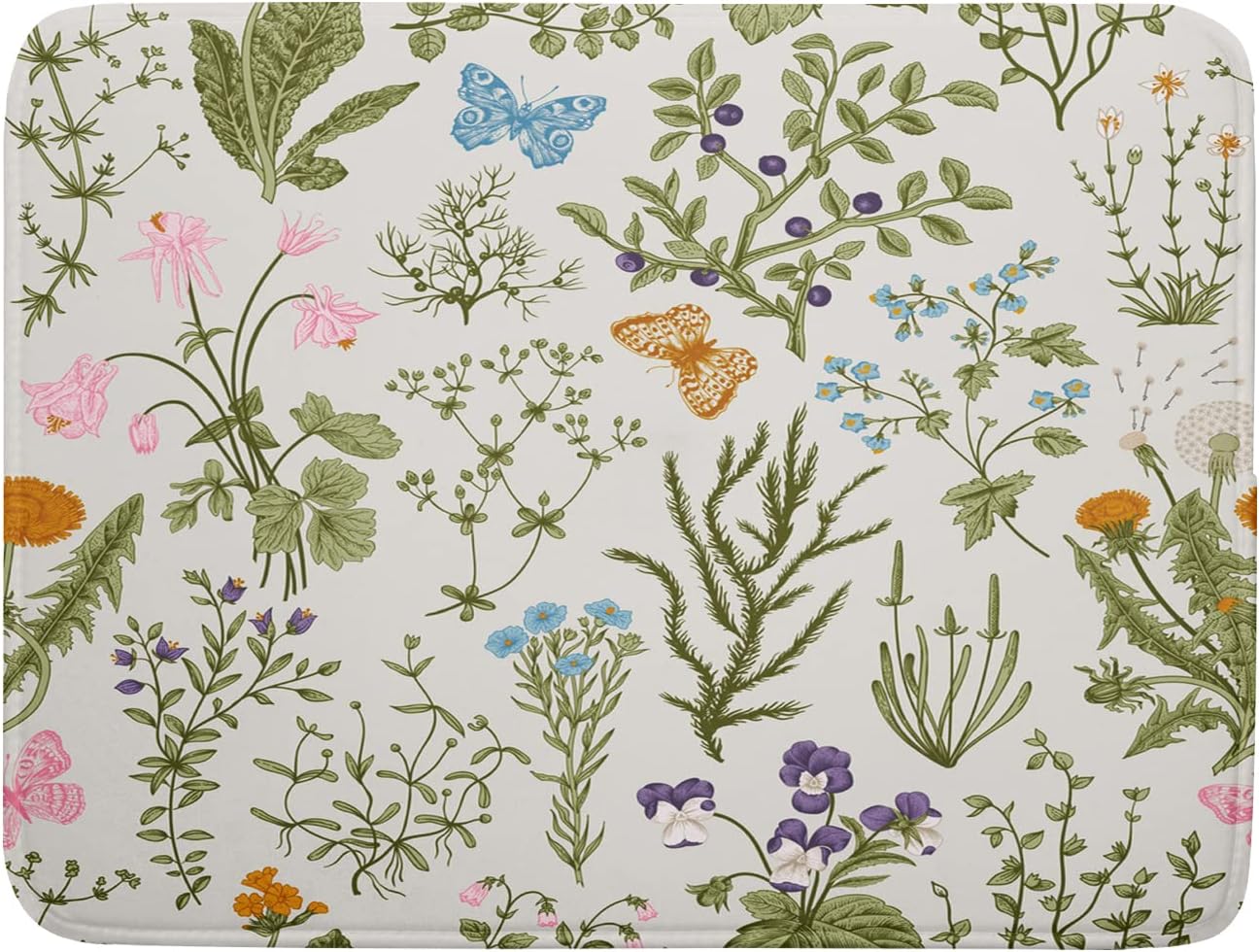 - 【Dish drying mat size】 16x18 inch amd 18x24 inch, high quality polyester dish mat drying kitchen mat.Made of microfiber,super absorbent and fast drying dish drying mat. Absorbent microfiber,in a 3-layer design without sacrificing its softness. Both sides can be used,one with flowers herbs,the other with a gray non-slip bottom.Wild flowers herbs decor drying mat for coffee bar countertops fits most countertops while providing a smart,sharp look.