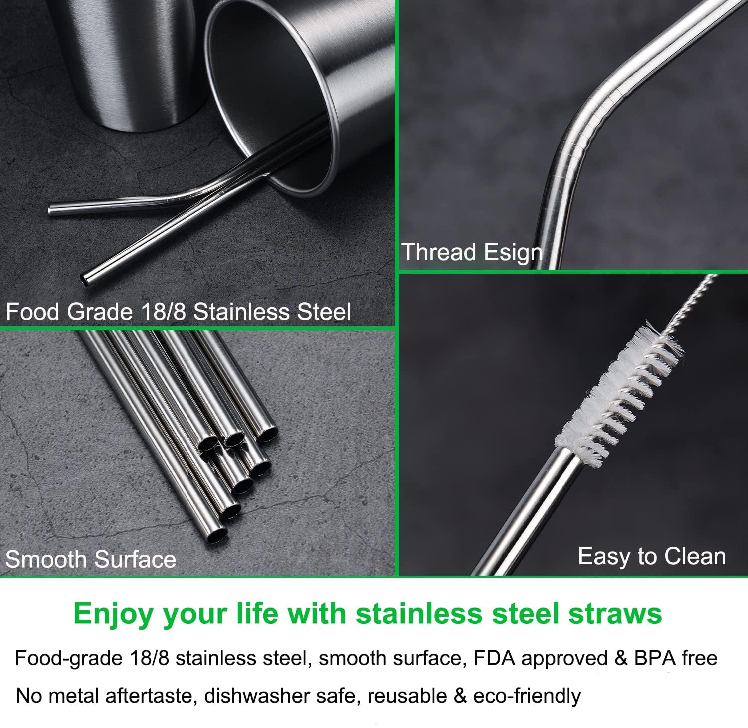 - 2,【Top Food-grade 18/8 Stainless Steel Straws】: Made of top food grade 18/8 stainless steel, the metal straw is the natural choice for everyone, which is BPA free, plastic free, no metal aftertaste, no oxidation, colorfast, dishwasher safe, reusable and environmentally friendly. One set of steel straws can be used for years to come - replacing hundreds or thousands of plastic straws