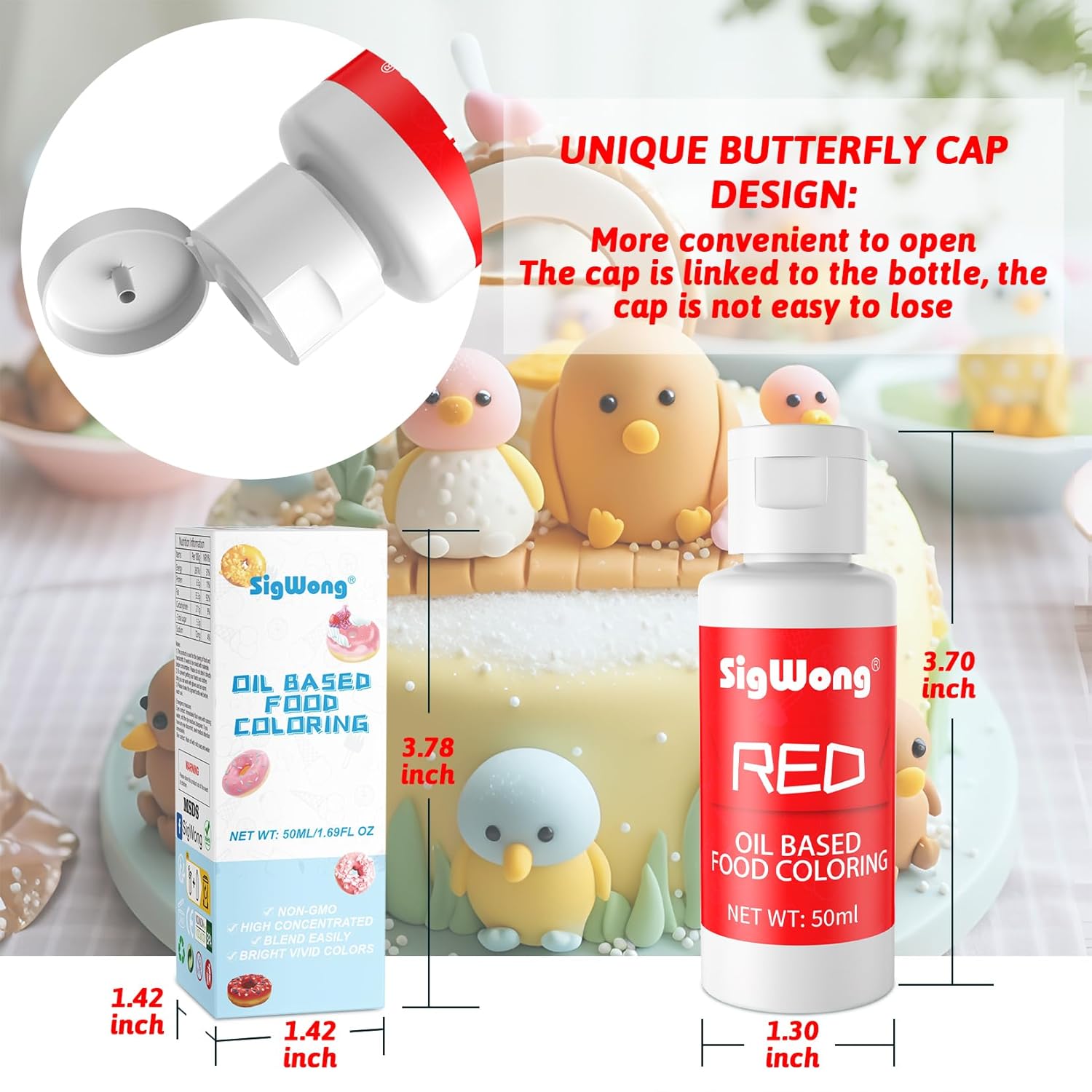 Oil Based Food Coloring for Chocolate - 50ml Red Upgraded Edible Oil Based Food Dye for Cake Decorating, Baking, Candy Melts, Cookie, Icing Frosting, Fondant, Meringues - 1.69 Fl.Oz Bottles