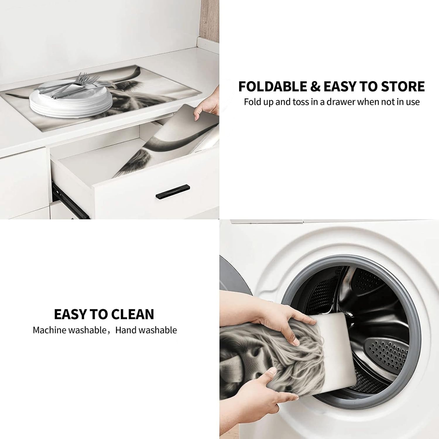 Large Dish Drying Mats For Kitchen Counter Microfiber Kitchen Drying Mat XL Draining Pad Absorbent Quick Drying Dish Mat 18x24 Inch - Cow Face