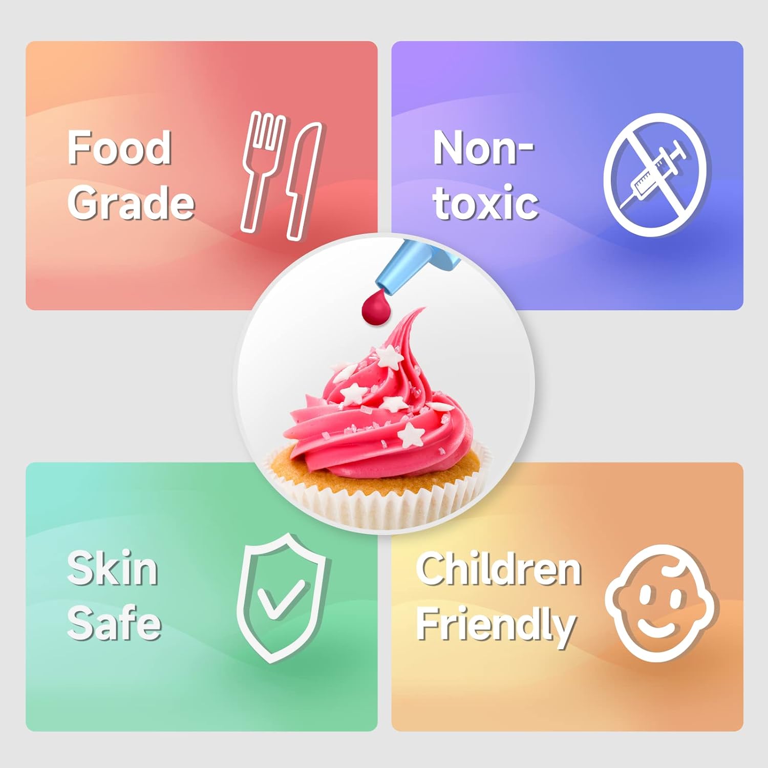 - Food-Grade Quality: Rest assured that our food coloring liquids are safe and made with high-quality food-grade ingredients. Our products meet industry standards and are suitable for all your cooking needs.