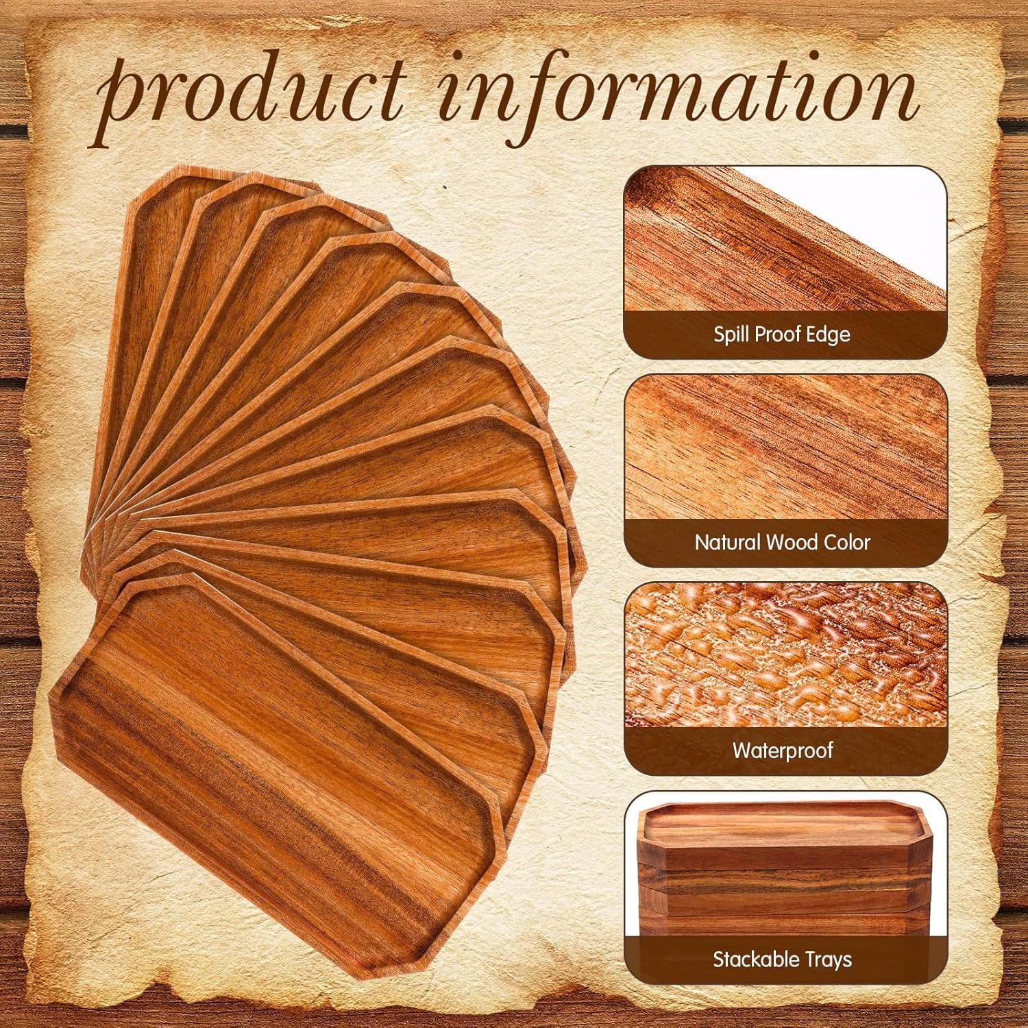 - Stackable design: the rectangular wooden platter can be stacked and is stable enough to avoid slipping; When you are not using them, they can be stacked and placed in the corner of the kitchen without taking up too much storage space