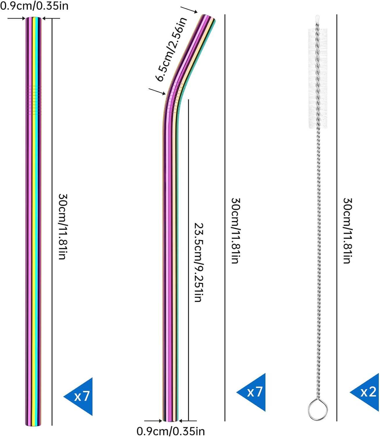 - š¹ Exceptional Value Set - This fantastic package includes 7 straight straws (11.8" x 0.35"), 7 curved straws (11.8" x 0.35"), complemented by 2 additional extra-long cleaning brushes. Offering superior convenience and practicality, this set is a must-have for any household.