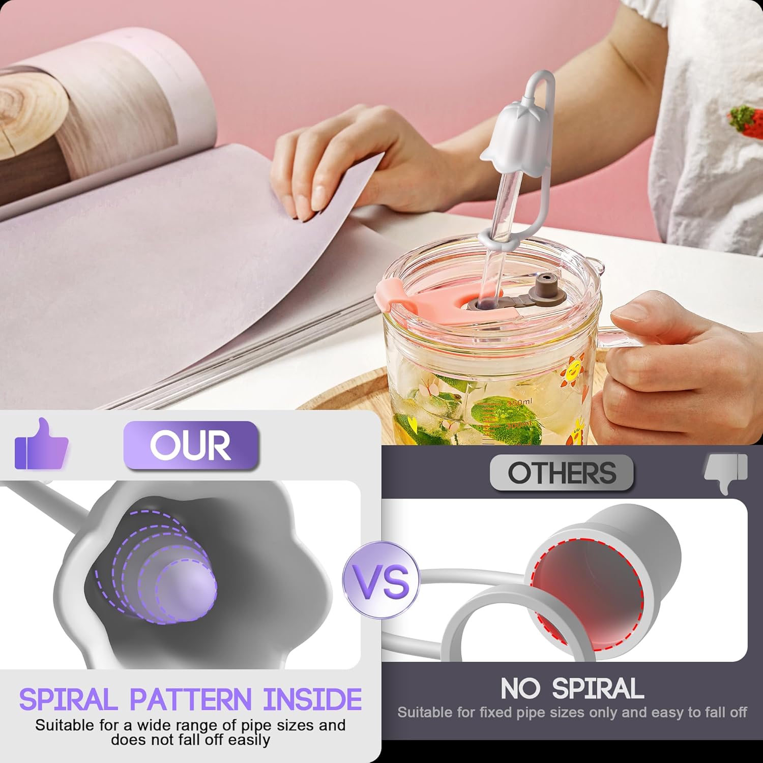 - [Upgrade Design] The straw cover cap has a protruding Spiral design from large to small inside which can be tightly matched with various sizes of straws(6-10mm,8mm is the most suitable), and can also perfectly match various Stanley tumbler cup (30 & 40 oz) and other kinds of cup