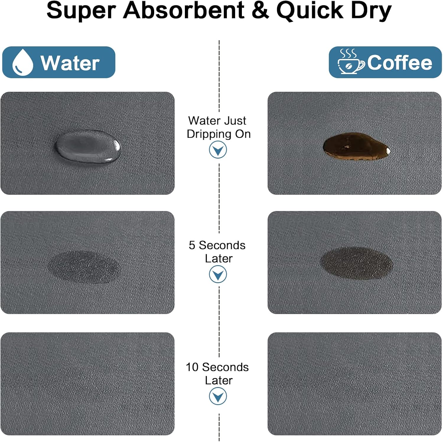 - 【No Water Mark】Special PU surface can easily hide water stains, coffee stains, milk stains, tea stains and any other dark and messy stains. Quick soak up the splahed water or coffee no need to use the paper towel to clean. The new performance is more convenient and clean than the traditional drying pad.