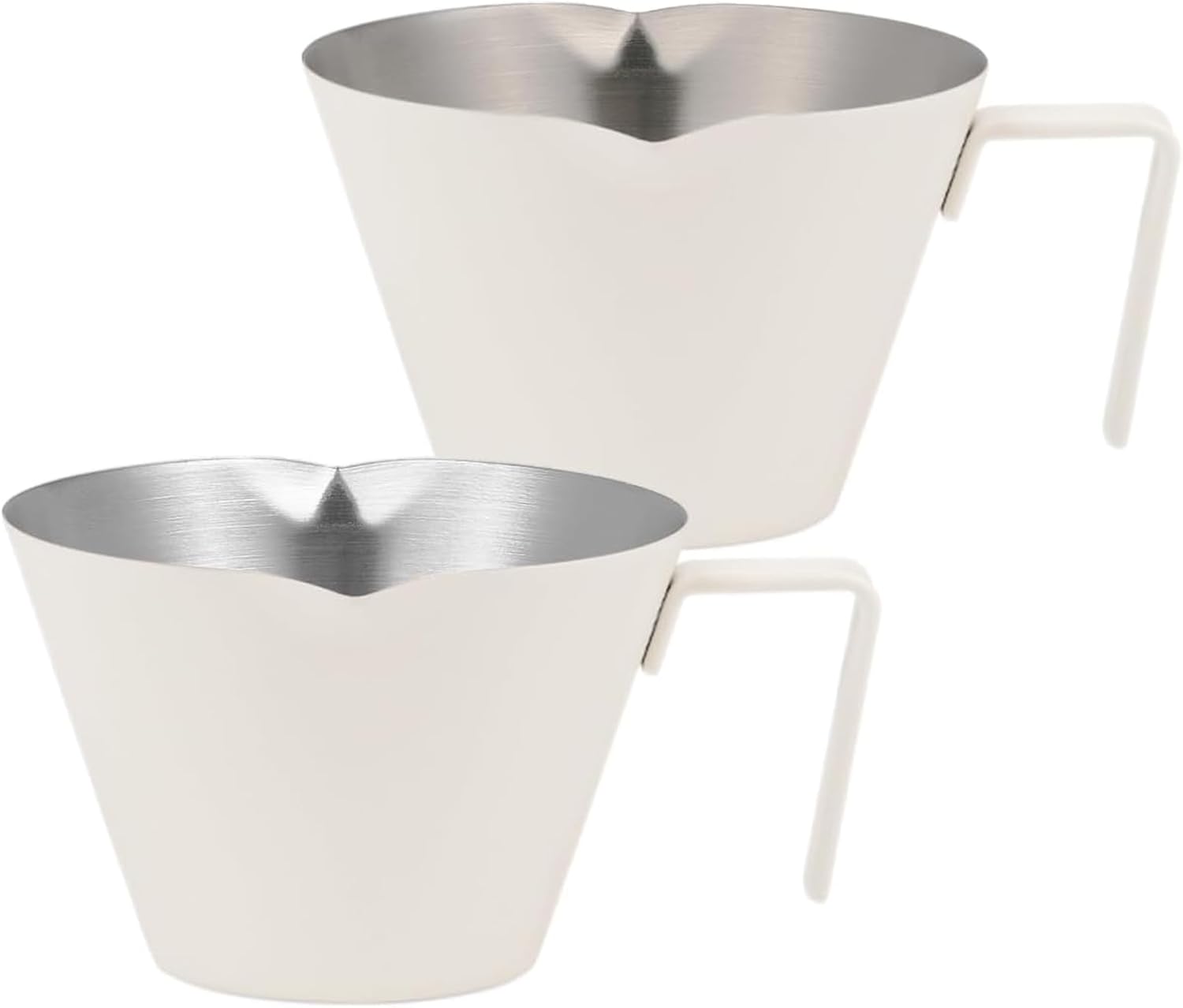 MHW-3BOMBER MHW-3BOMBER Espresso Measuring Cups 2Pcs with Handle, 1oz / 2oz / 3oz Double Spouts Stainless Steel Espresso Shot Cups with Scale, V-Shaped Mouth, 3.4oz / 100ML White G6200W-OS