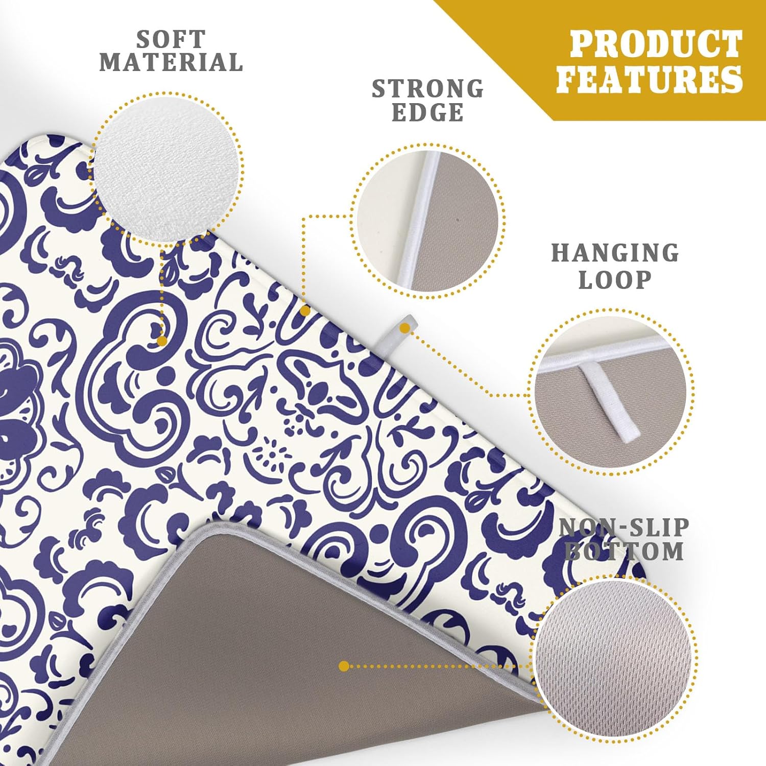 - 2【Widely Used】: The blue boho floral dish drying mats for kitchen counter countertop, coffee bar, dish drain rack, great for air drying dishes, glasses, silverware, pots, pans, fruits and vegetables. It's fade resistant and never stain your kitchen counter topand keep your counter dry.