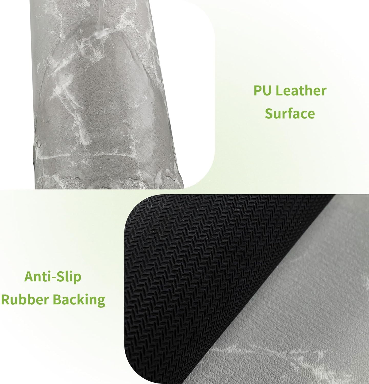 Coffee Bar Mat Dish Drying Mat - 16x24, PU Surface & Rubber Backed, Kitchen Countertop Protector, Quick Absorbent, Heat Resistant - Gray and White Marble