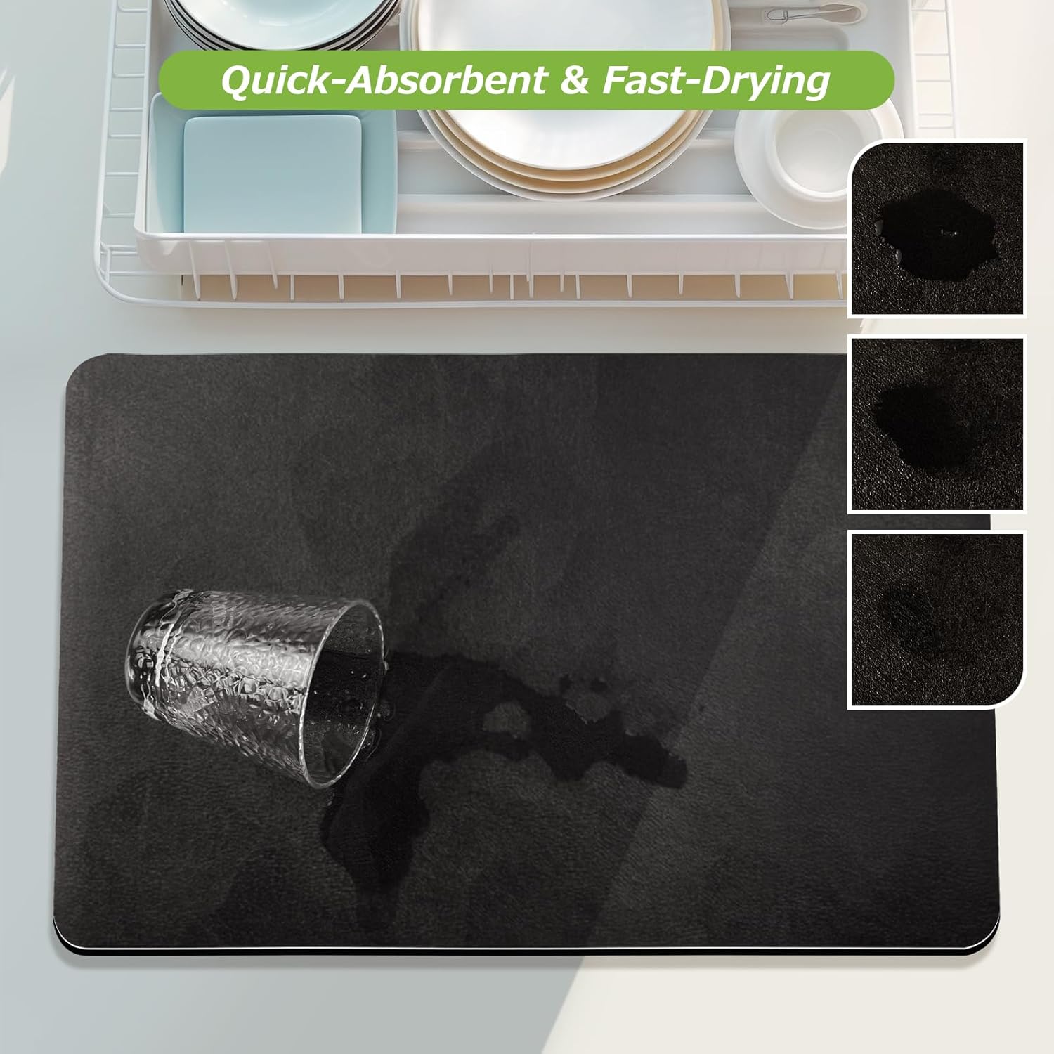 - 【Superior Stain Protection】 Crafted with an absorbent PU leather surface, the Matace Drying Mat quickly soaks up accidental spills and drips, keeping your kitchen counter clean and dry. Ideal for use as a coffee station mat or kitchen drying mat, it effectively protects your surfaces from everyday messes.