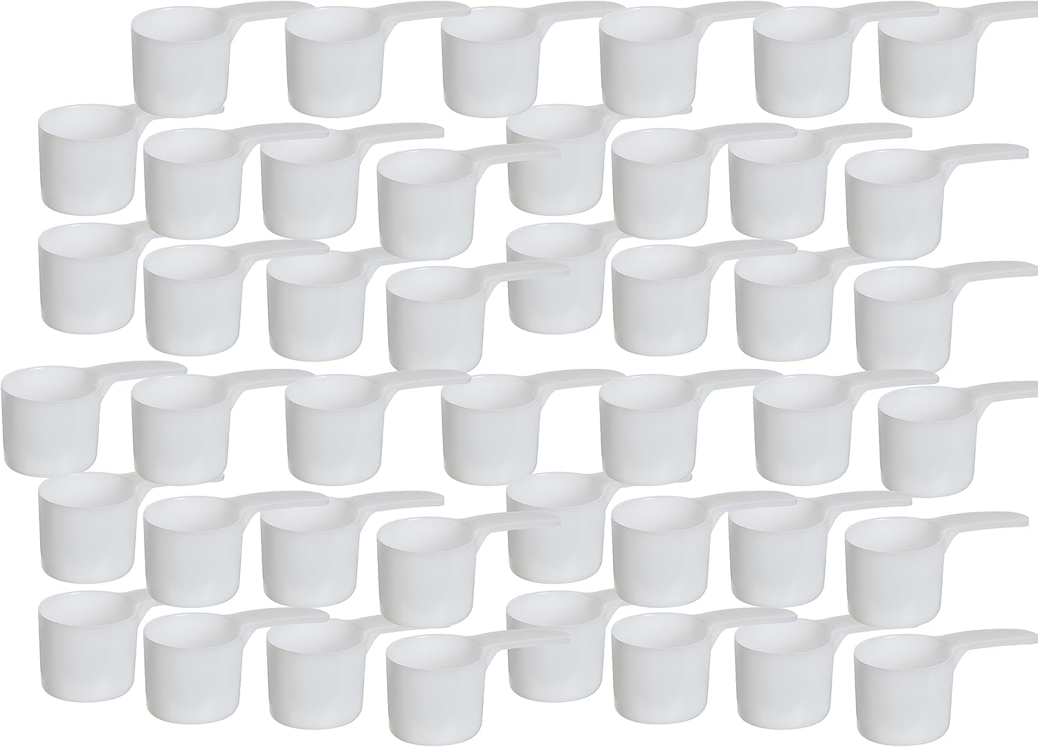 70 mL Plastic Measuring Packaging Scoop (=70 cc/ = 4.73 Tablespoon/ = 2.37 fl oz/ = 0.3 Cup), Meidum Handle - to Measure and Dispense Spices, Granules, Powders, for Seeds Packing (50)