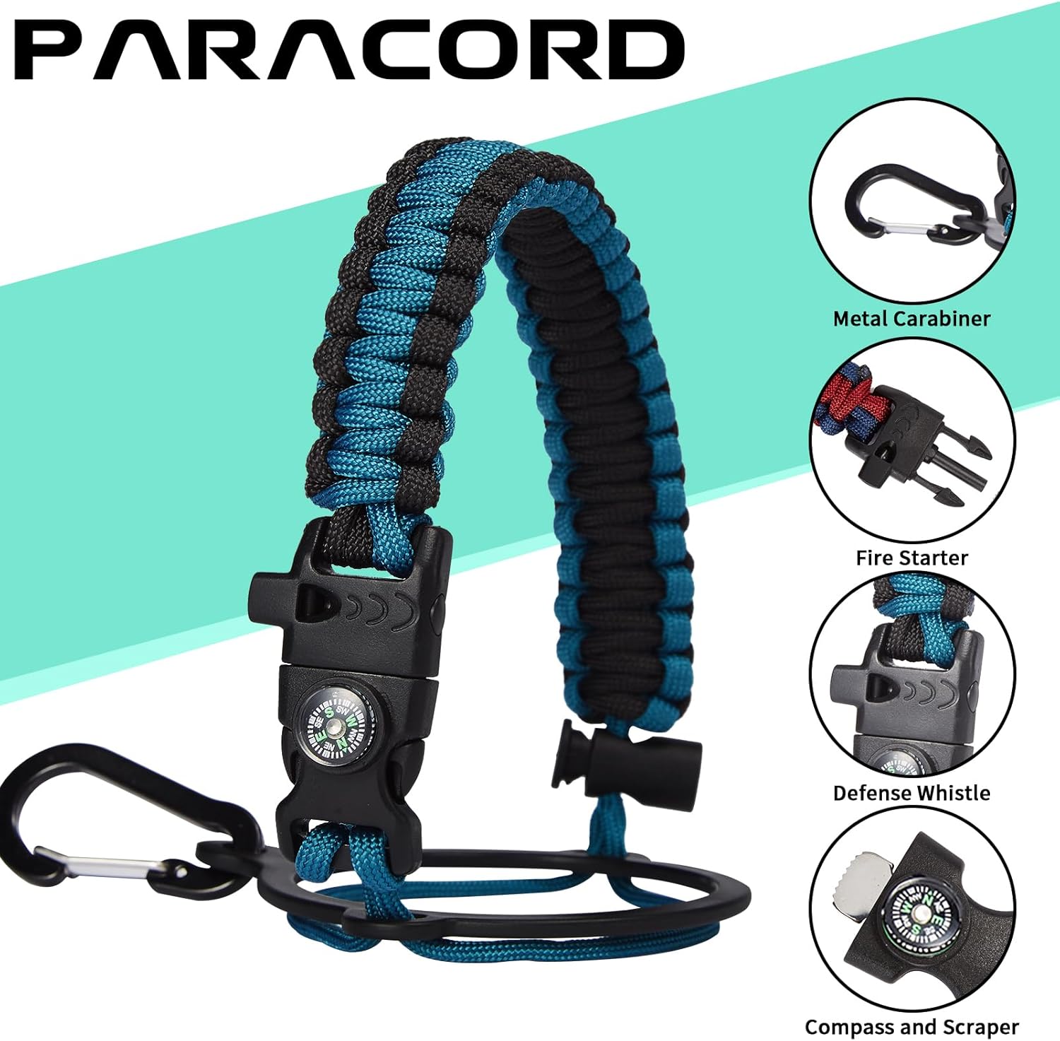 - UNIQUE DESIGNS PARACORD HANDLE: Full-function paracord handle made in individual styles to match the color of the flask water bottles. With compass, safety ring, carabiner & whistle. It unravels into a sturdy and taut rope in an emergency, making the large water jug an ideal survival kit for expeditions in the wild