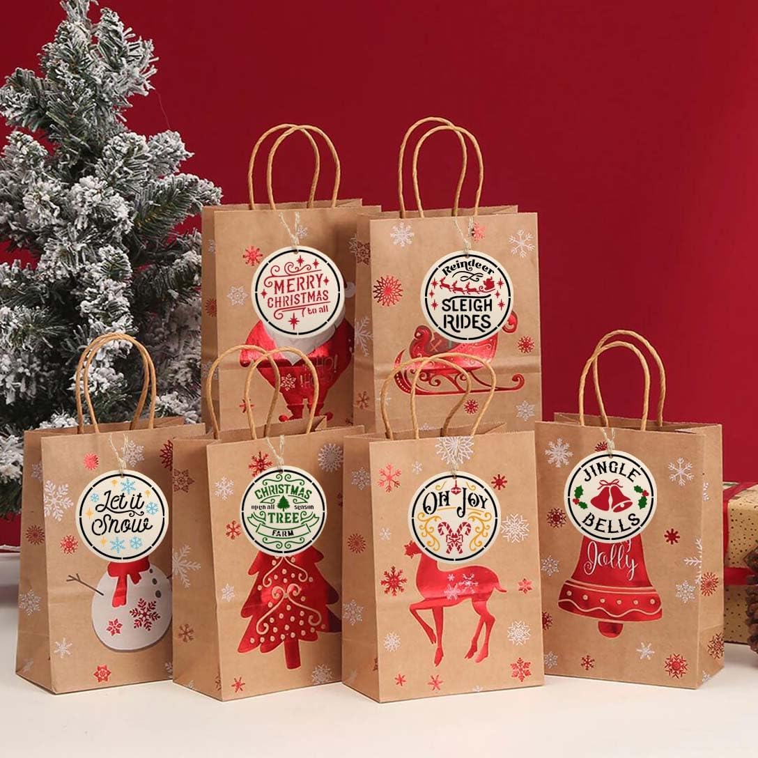 Small Christmas Stencils 4inch,Christmas Stencil Xmas Vintage Stencils Holiday Templates for Painting on Wood Slice