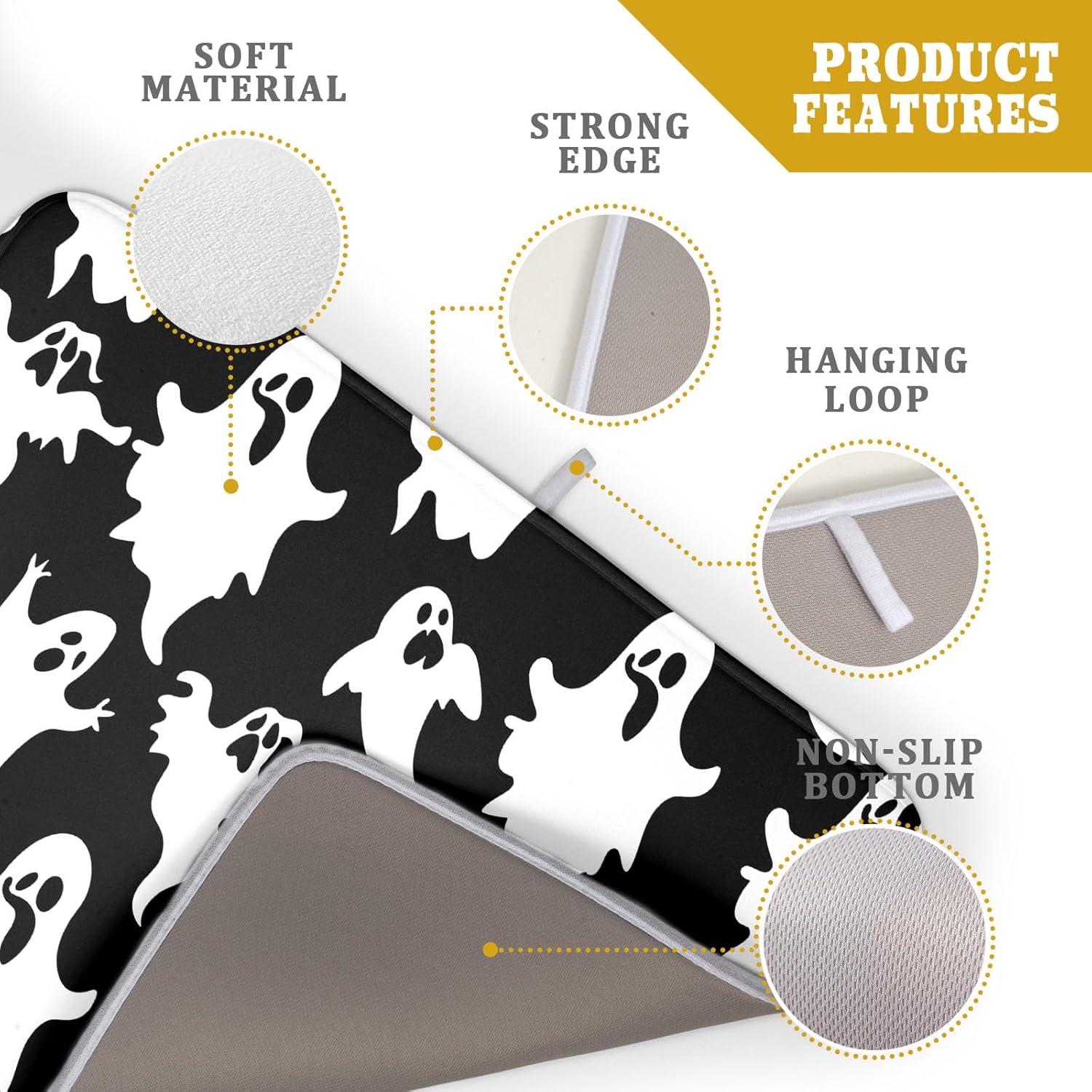 - 3【Unique Design】: Halloween style dish drying mats with vibrant bright ghosts pattern, which can add more charming charm to your kitchen office or coffee bar counter. The drying mat for kitchen counter with unique hanging rope design that can be hung without occupying any space,soft and foldable, easy to store.