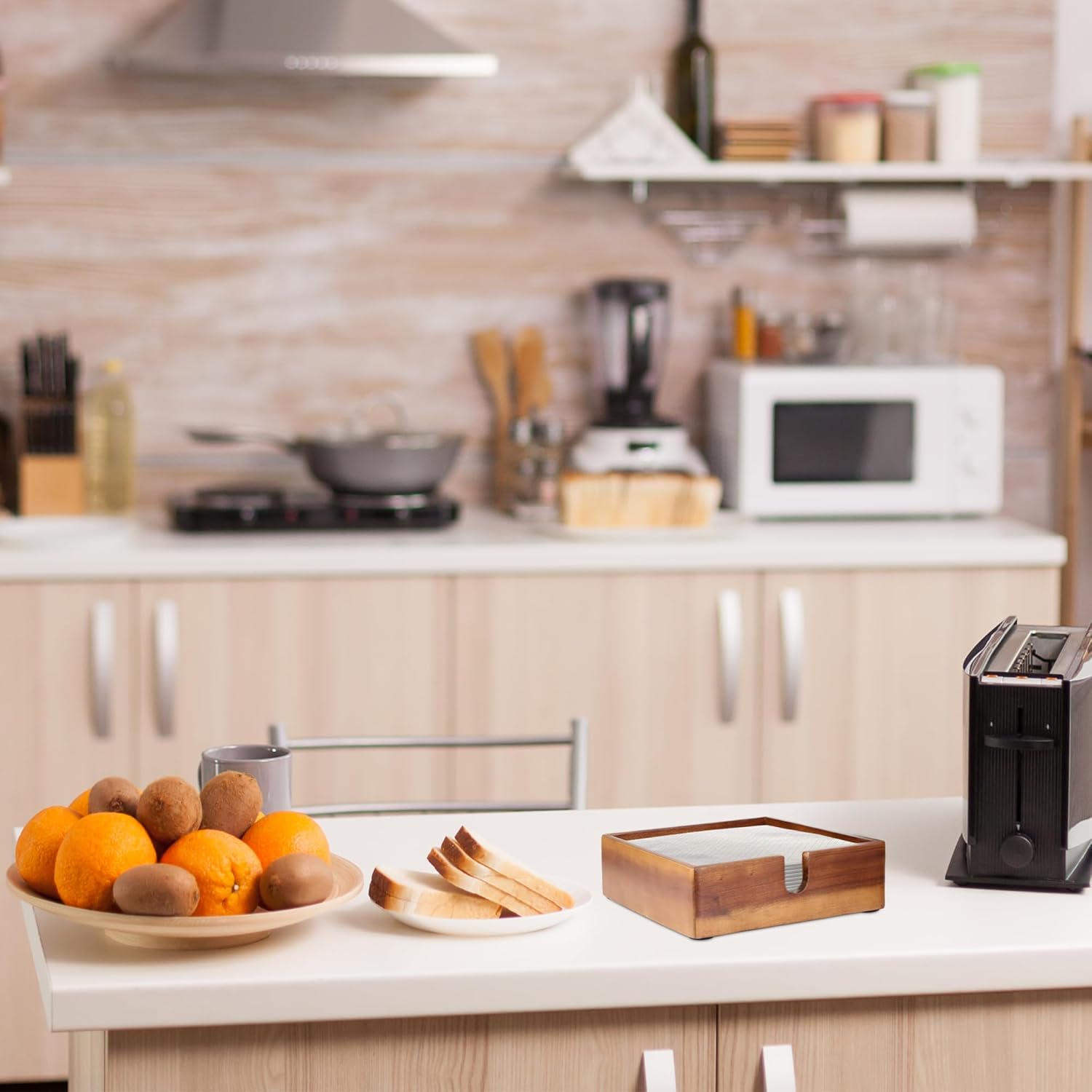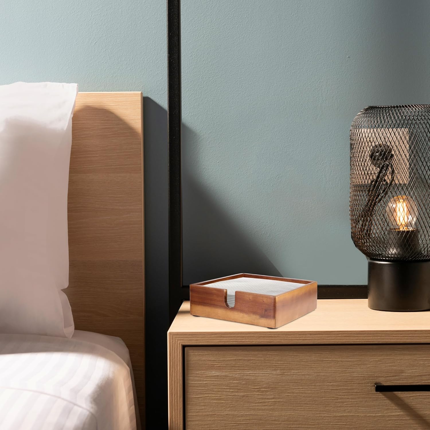 Acacia Lunch Napkin Holder 7.8 x 7.8 inches for Dining Table and Kitchen – Napkin Dispenser Made from Brown Acacia Wood – Premium Quality Feel for Dessert Beverage Party Dinner Luncheon Bar Table