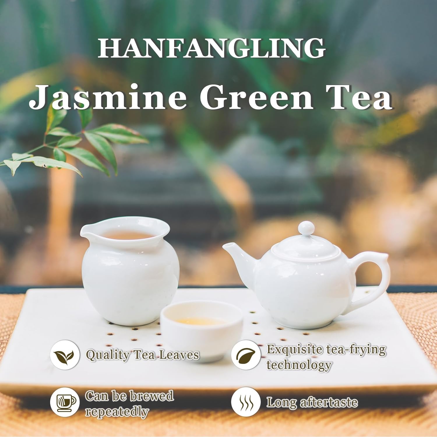 HANFANGLING Jasmine Green Tea - Premium Loose Leaf Tea with Natural Jasmine Flowers, 100% Natural, Aromatic & Refreshing, 1.76oz
