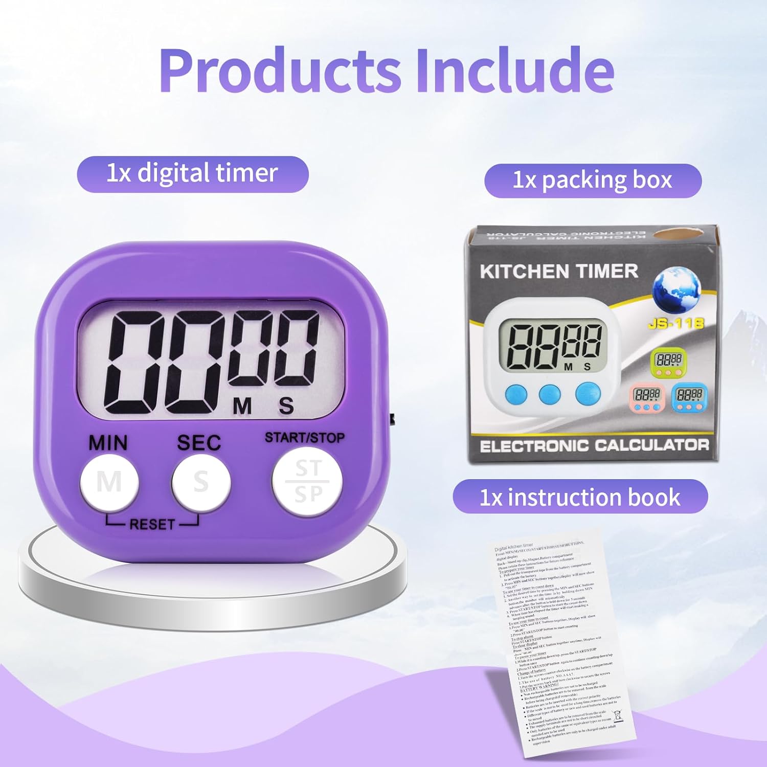- 2 Multifunctional Timers: 2 purple digital timers to meet your home and office dual needs. Classic color design, whether placed in the kitchen, bedroom, desk is not wrong.