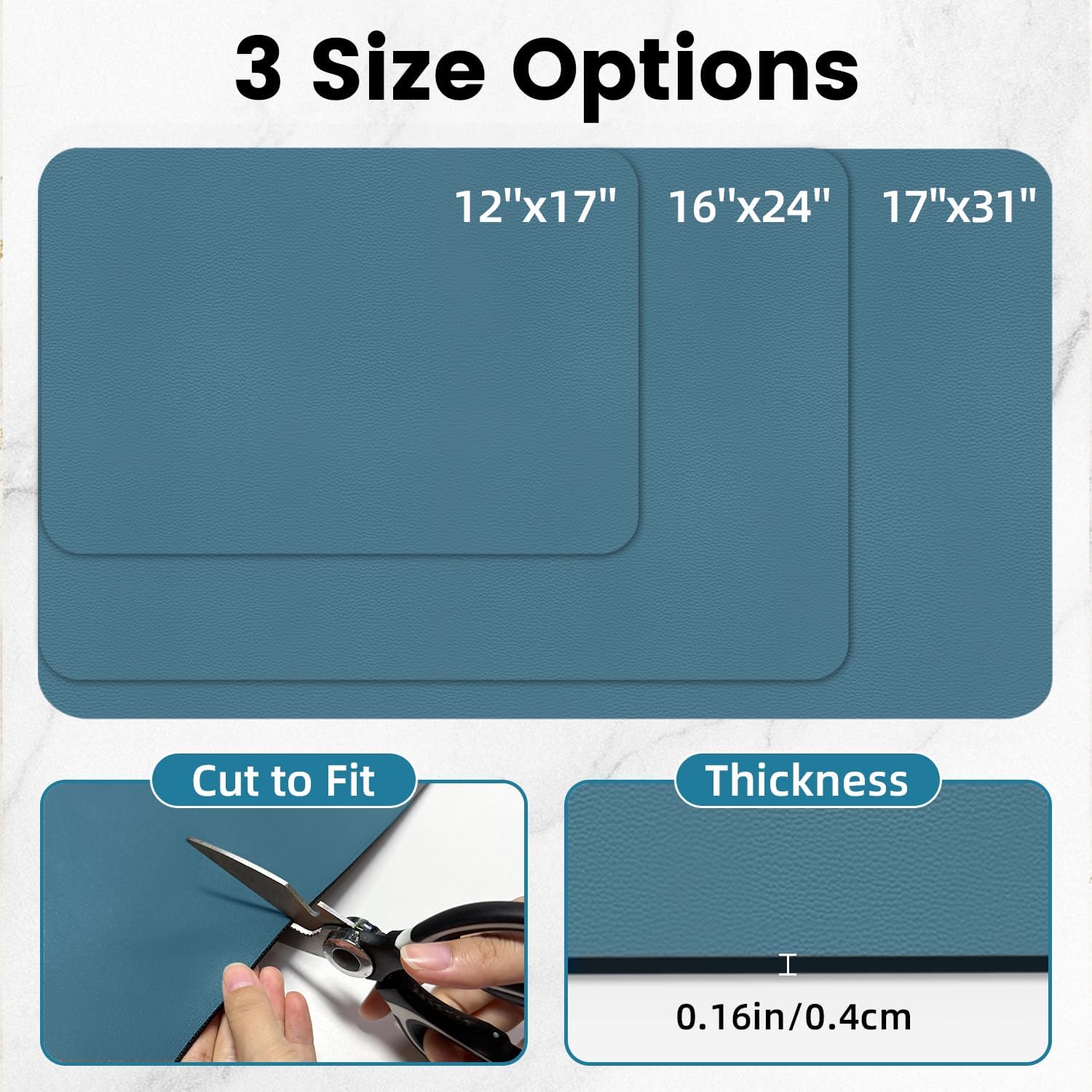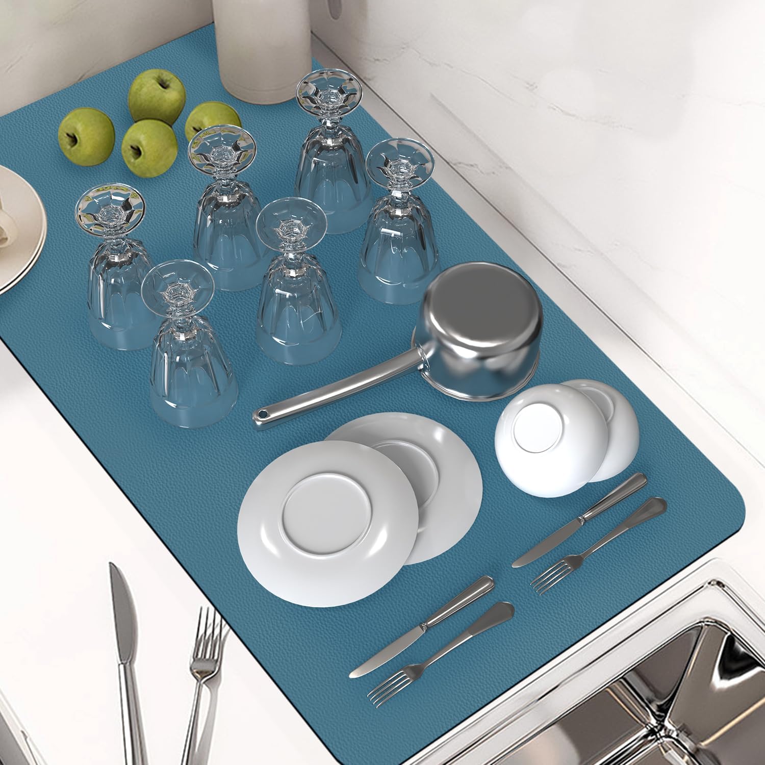 PoYang 31.5"x17" Coffee Mat X-Large, Coffee Bar Accessories for Countertop, Absorbent Dish Drying Mat, Anti-Slip and Hide Stain Pad for Espresso Machine, Espresso Maker and Kitchen Counter, Blue