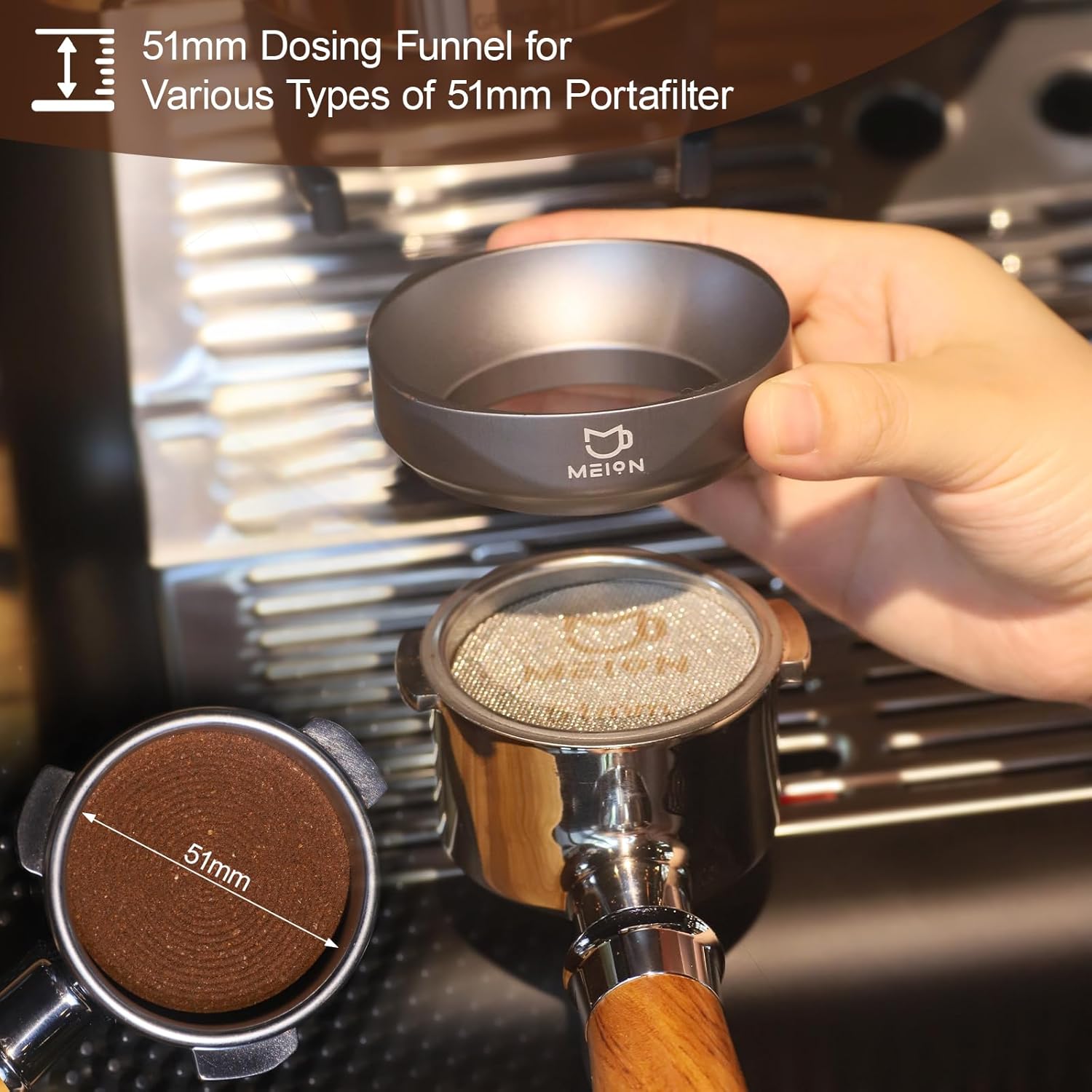 - Quality Materials - MEION portafilter funnel is made of anodized aluminum, sturdy and will not rust.