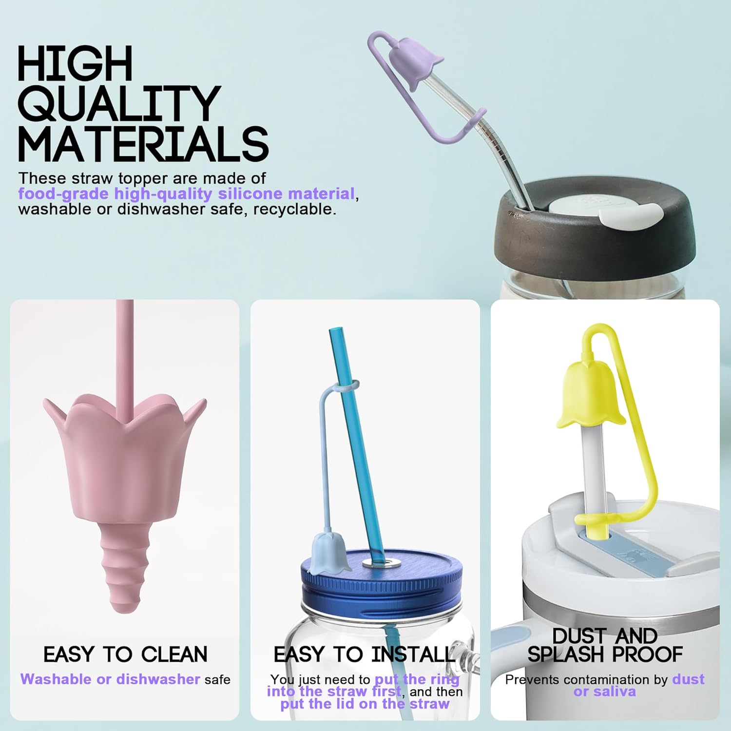 - [High Quality Material& Easy of Cleaning] Our straw covers are made of stretchy food-grade silicone which is no stitching make it less likely to break and more beautiful, which fits the straw better and easier to put on and off the straw lid, the straw cap can be turnover for easy cleaning