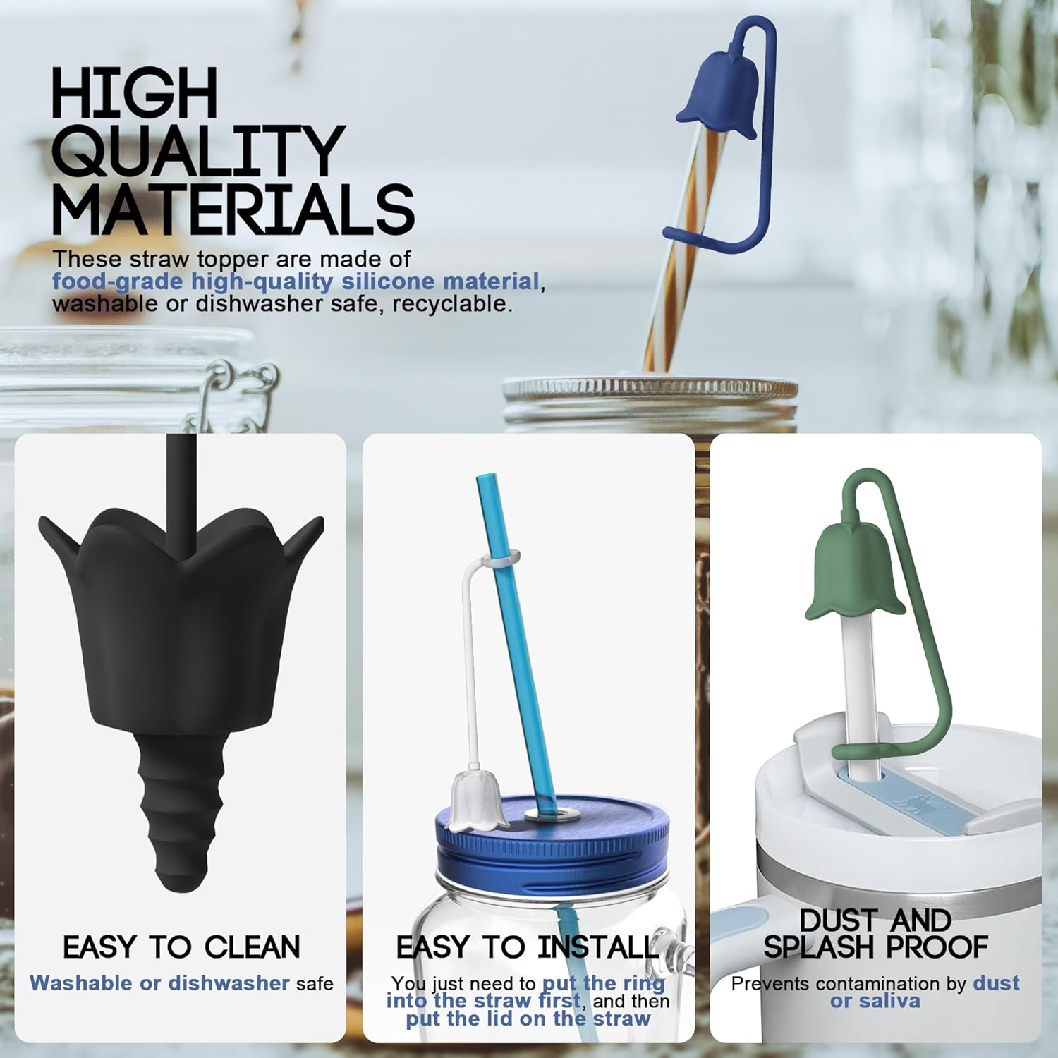 - [High Quality Material& Easy of Cleaning] Our straw covers are made of stretchy food-grade silicone which is no stitching make it less likely to break and more beautiful, which fits the straw better and easier to put on and off the straw lid, the straw cap can be turnover for easy cleaning