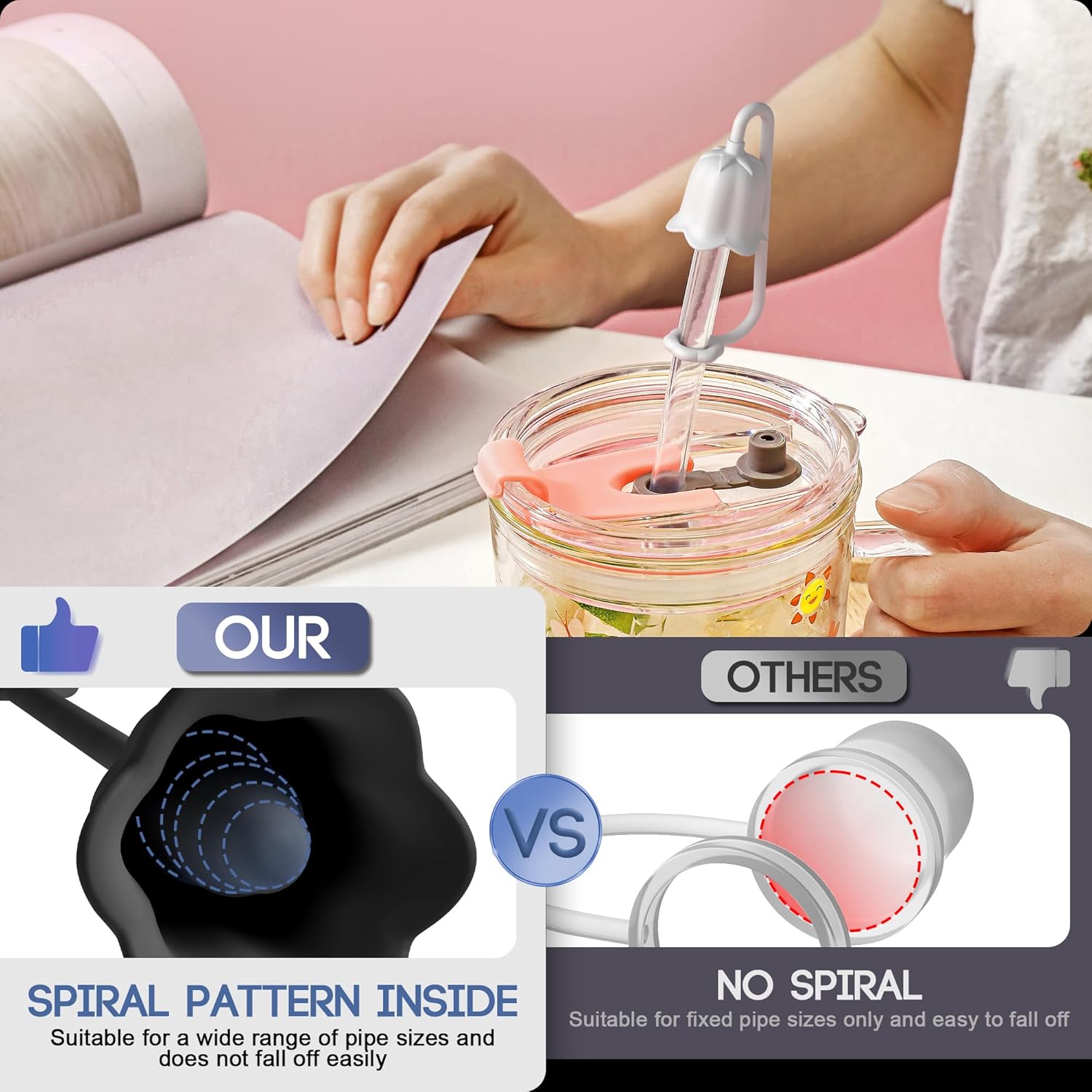 - [Upgrade Design] The straw cover cap has a protruding Spiral design from large to small inside which can be tightly matched with various sizes of straws(6-10mm,8mm is the most suitable), and can also perfectly match various Stanley tumbler cup (30 & 40 oz) and other kinds of cup