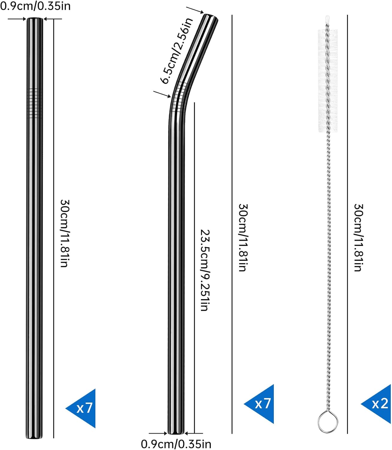 - š¹ Exceptional Value Set - This fantastic package includes 7 straight straws (11.8" x 0.35"), 7 curved straws (11.8" x 0.35"), complemented by 2 additional extra-long cleaning brushes. Offering superior convenience and practicality, this set is a must-have for any household.
