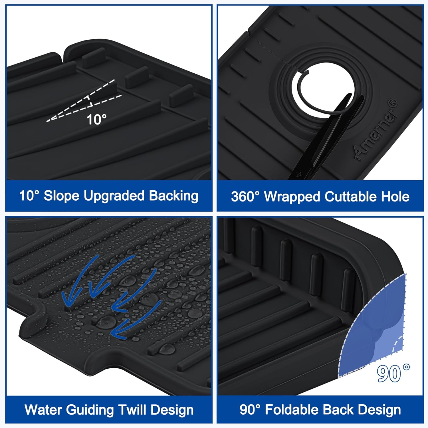 - 【Keeps Countertops Dry】The drip catcher tray efficiently collects water and soap drips from the faucet handle, directing them into the sink with its 10° slope design. This faucet mat for kitchen sink prevents pooling on the countertop, keeping your surfaces dry and clean