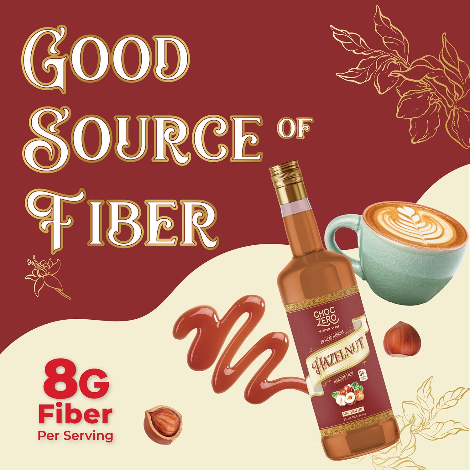 ChocZero Sugar Free Hazelnut Syrup for Coffee - Keto Flavoring Syrups - Low Calorie Simple Syrup for Flavored Drinks – 25.4 Fluid Ounces