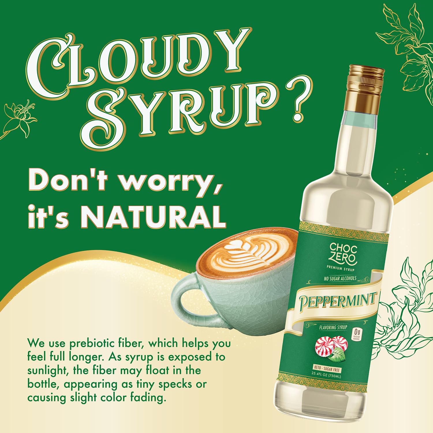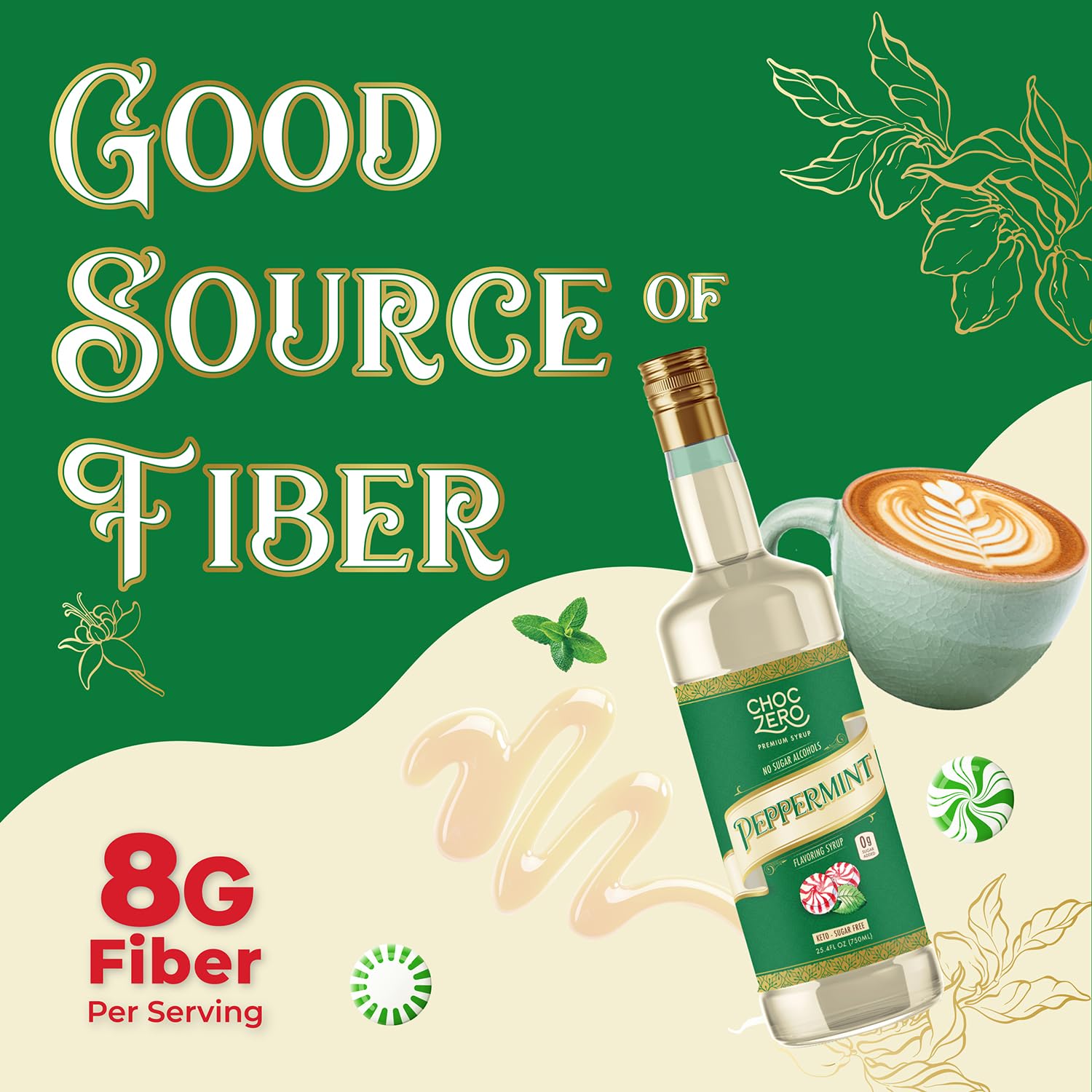 ChocZero Sugar Free Peppermint Syrup for Coffee - Keto Flavoring Syrups - Low Calorie Simple Syrup for Flavored Drinks – 25.4 Fluid Ounces