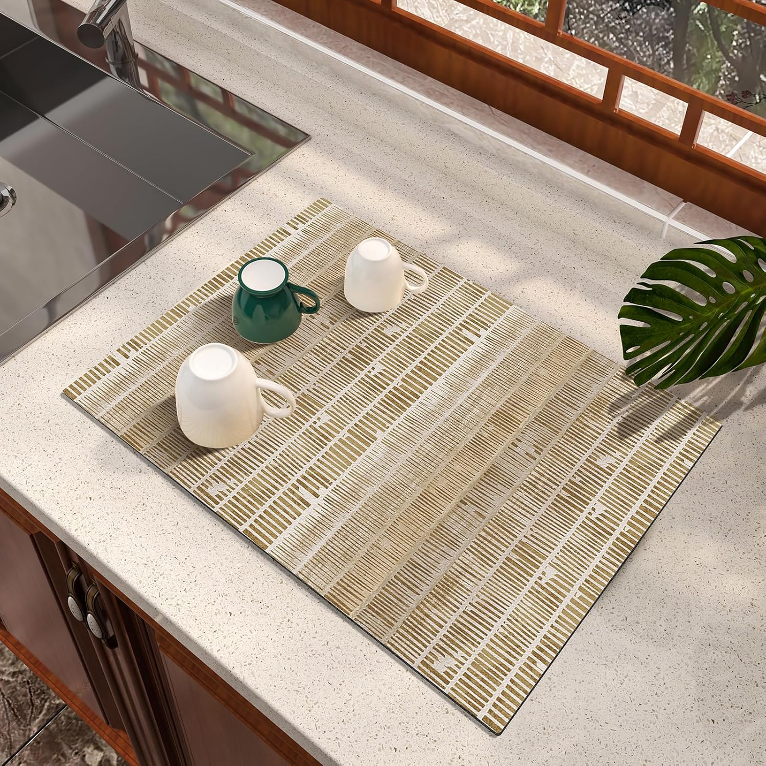Dish Drying Mat, Diatomaceous Earth Soft Coffee Mat, Absorbent Silicone Dish Drying Mat for Kitchen Counter or Sink for Kitchen Bathroom Coffee Bar (Linear Pattern, 12 x 16 Inches)