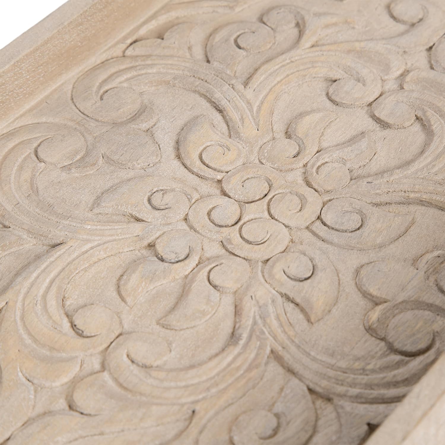 Kate and Laurel Adhira Carved Decorative Rectangle Tray, 24 x 10, Natural Wood, Traditional Display Tray with Handles and Hand Carved Wooden Pattern