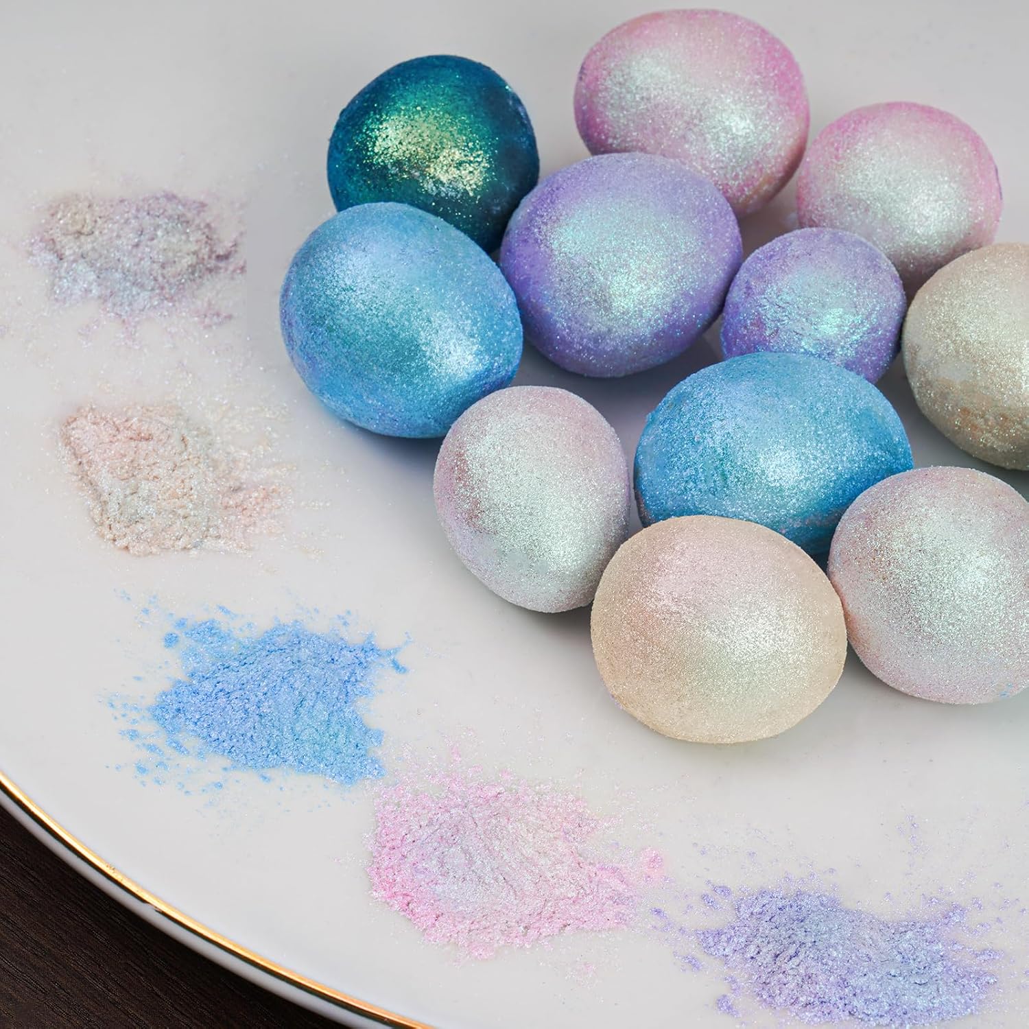 - ✔️【Easy to Use】Specially developed for food decoration and craft industries, this luster dust produces realistic looks by highly pigmented colors with a metallic finish. The pretty fine grain is more convenient for painting. To add glimmer and sparkle to your creations, simply sprinkle or dry brush the luster glitters on them. This product adheres very well to both wet and dry mediums. Attention: Seal and store glitter powder in a cool and dry place after use. Do not expose to excessive heat.