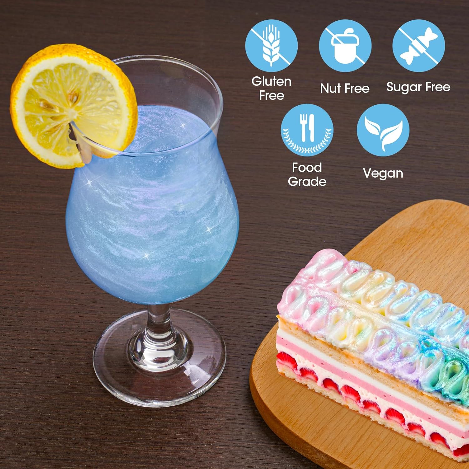 - ✔️【Safe & Non-Toxic】Our multi-purpose glitter contains mica-based pigments and undergoes a specific manufacturing process to make the minerals safe and edible. It’s a safe food coloring without added sugar or flavors, and ingredients in the edible glimmer powder include mica, titanium dioxide and iron trioxide, which are color additives specifically approved for food.