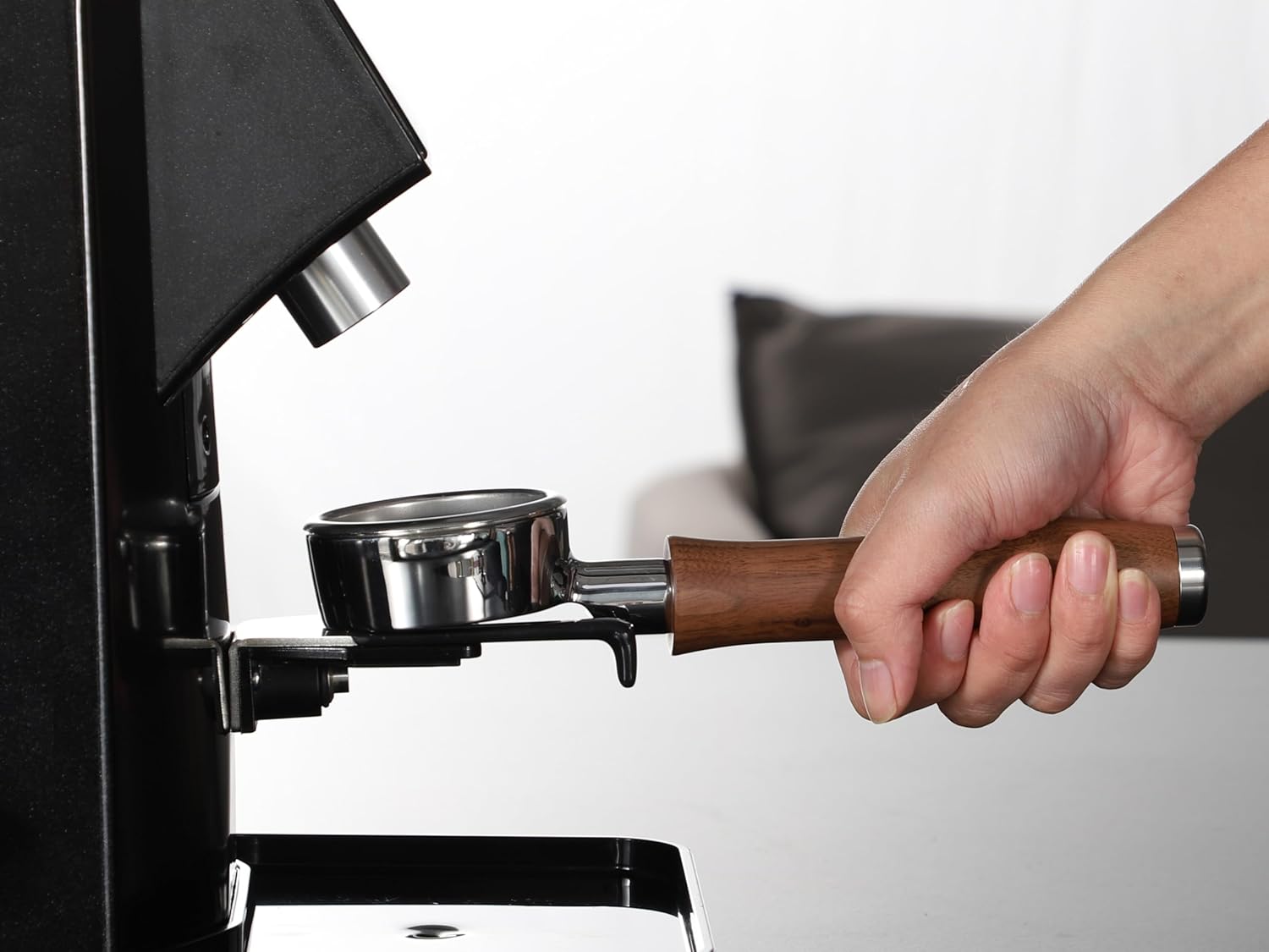 - Crafted with Food-Grade Stainless Steel and Natural Walnut wood Handle - The portafilter head is cast in food-grade stainless steel and highly polished by manual craftsmanship to ensure a snug fit with the coffee machine. The portafilter handle is made of 100% natural Walnut wood, providing a smooth surface and ergonomic design for a comfortable and natural grip, reducing strain on wrists and hands. This ensures a comfortable experience during extended brewing sessions.