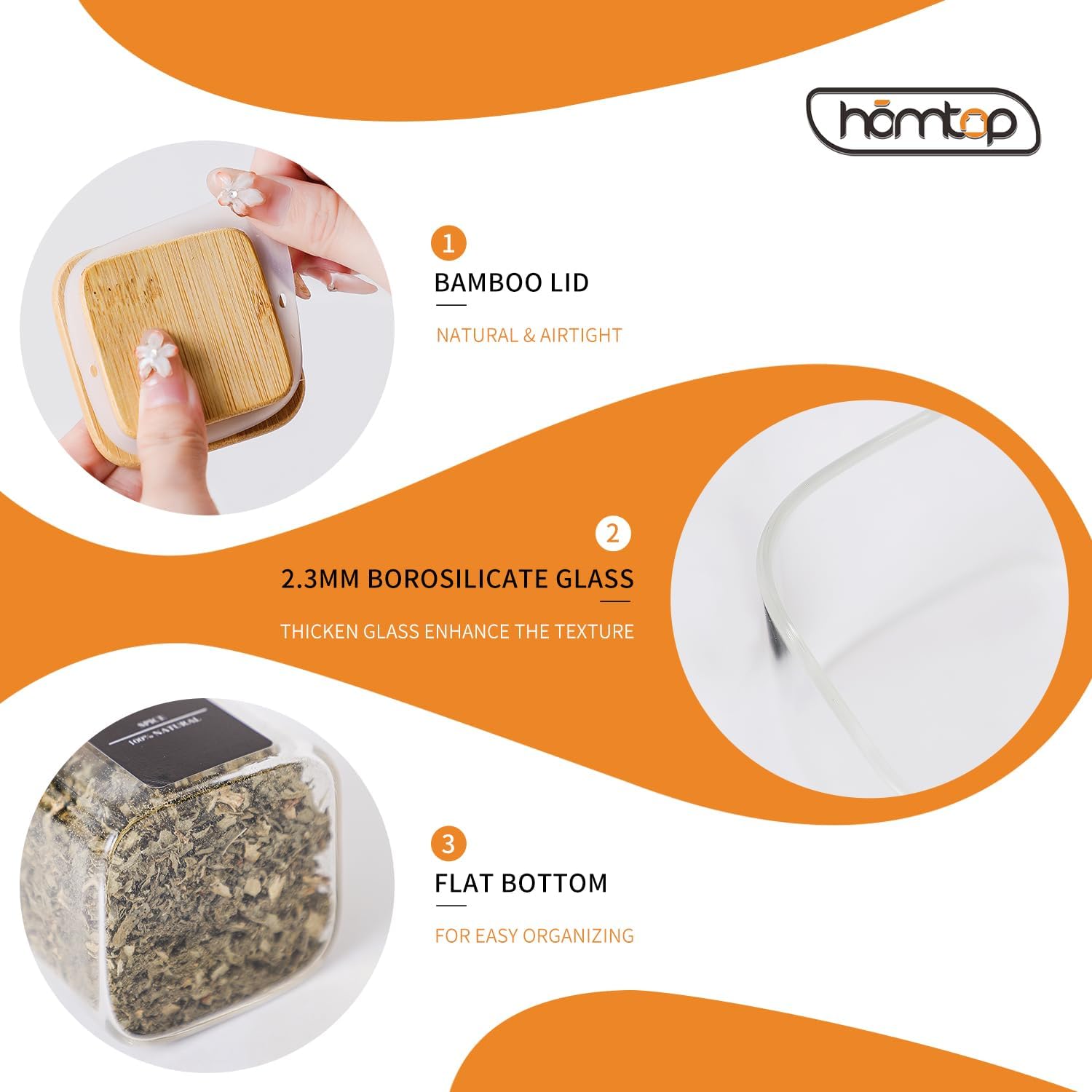 10Pcs 7oz Spice Jars Glass Container with 275 Labels, Airtight Seasoning Empty Organizer with Bamboo Lid Set for Pepper, Salt, Sugar
