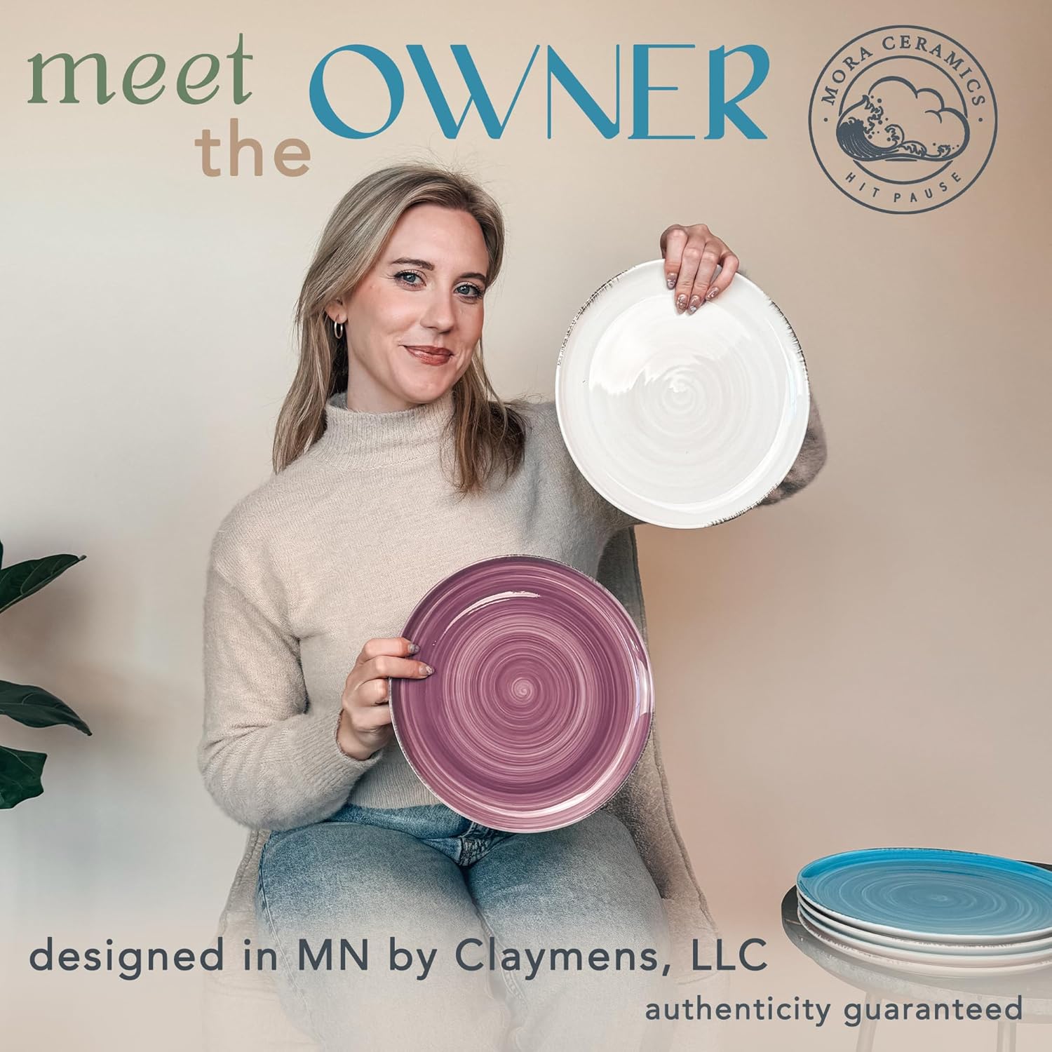 Mora Ceramic Helix Swirl Dinner Plates Set of 6, 10in Modern Spiral Porcelain Dish Dinnerware for Kitchen, Serving & Restaurants - Dishwasher, Microwave, Freezer, Oven Safe Dishware - Ocean Colors