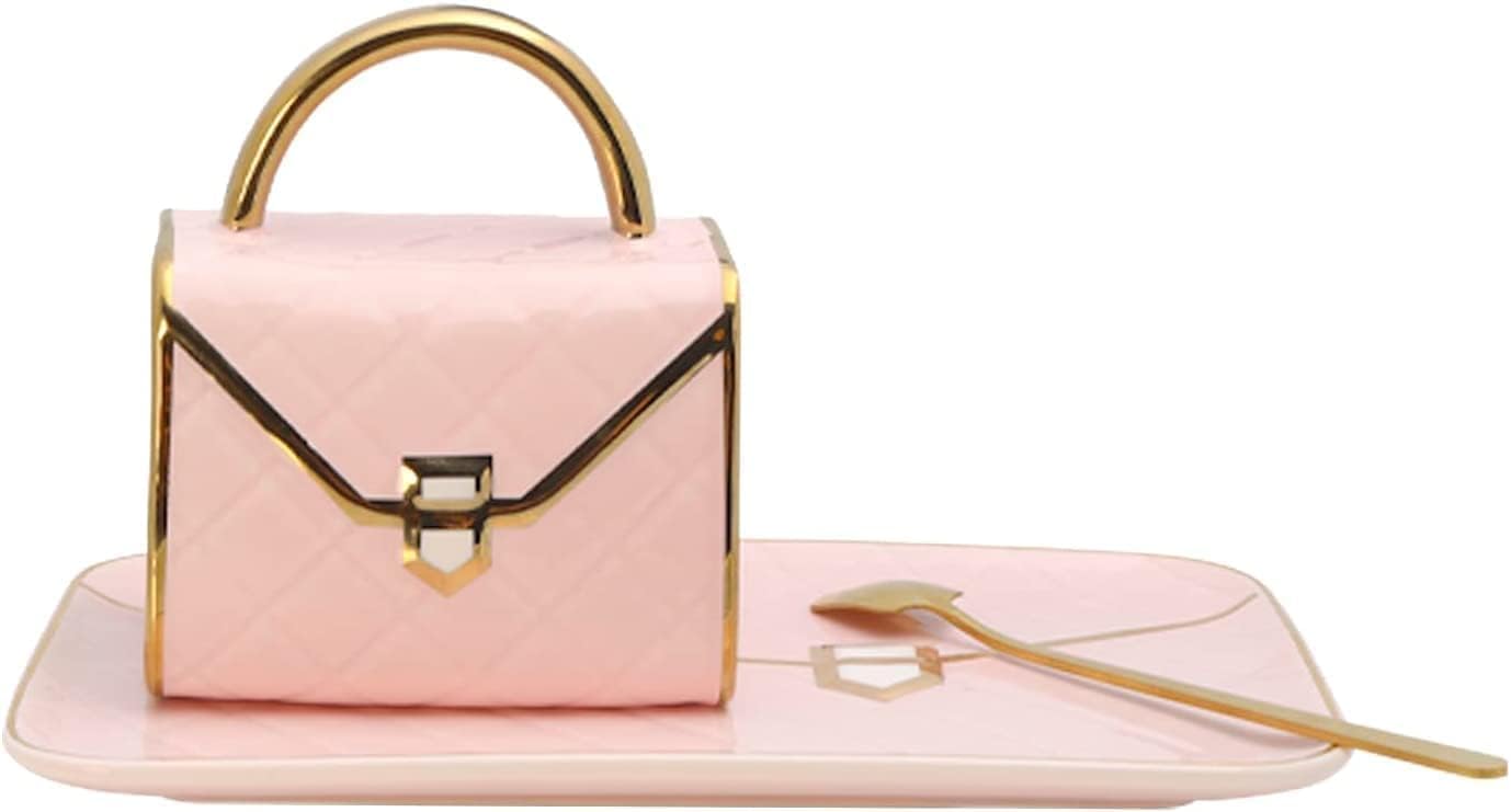YnsfreeCeramic Purse Coffee Mugs Set Tea Cup Unique Bag shaped mug and Saucer Set with Spoon and Saucer For Women Thanksgiving Christmas Gifts (Pink)