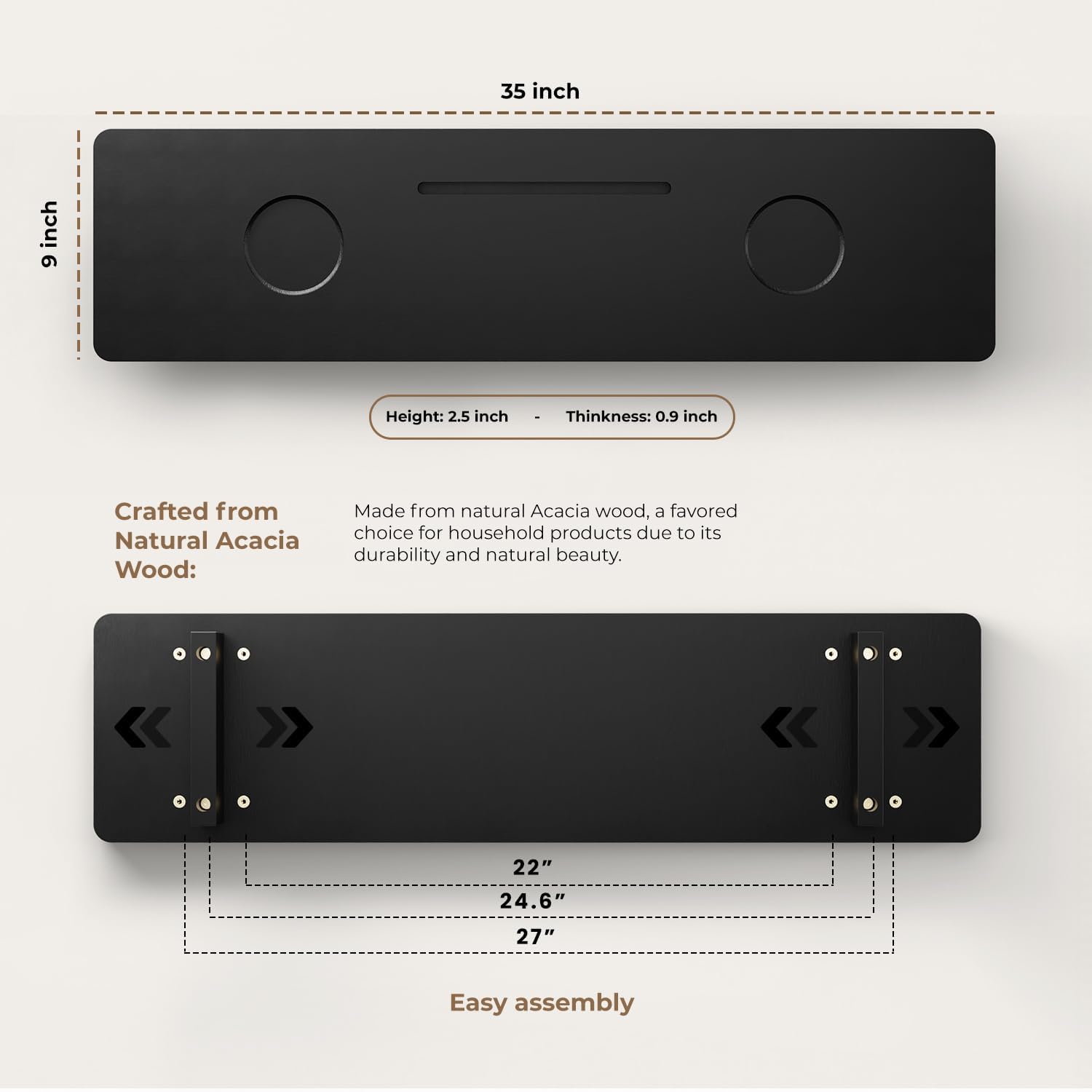 Tinamo Black Bathtub Caddy Tray Table | 35x9x2.5 Inch Large Bath Tub Tray Wooden | Anti-Tipping, Sustainable Tub Tray for Bathtub | Bathtub Accessories Holders for Bathtub (Acacia Wood)
