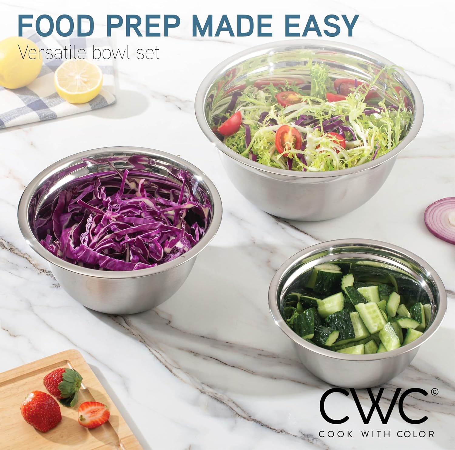 - Premium Stainless Steel: Crafted from high-grade 18/10 stainless steel, these bowls ensure durability, corrosion resistance, and a sleek, modern aesthetic that complements any kitchen decor.