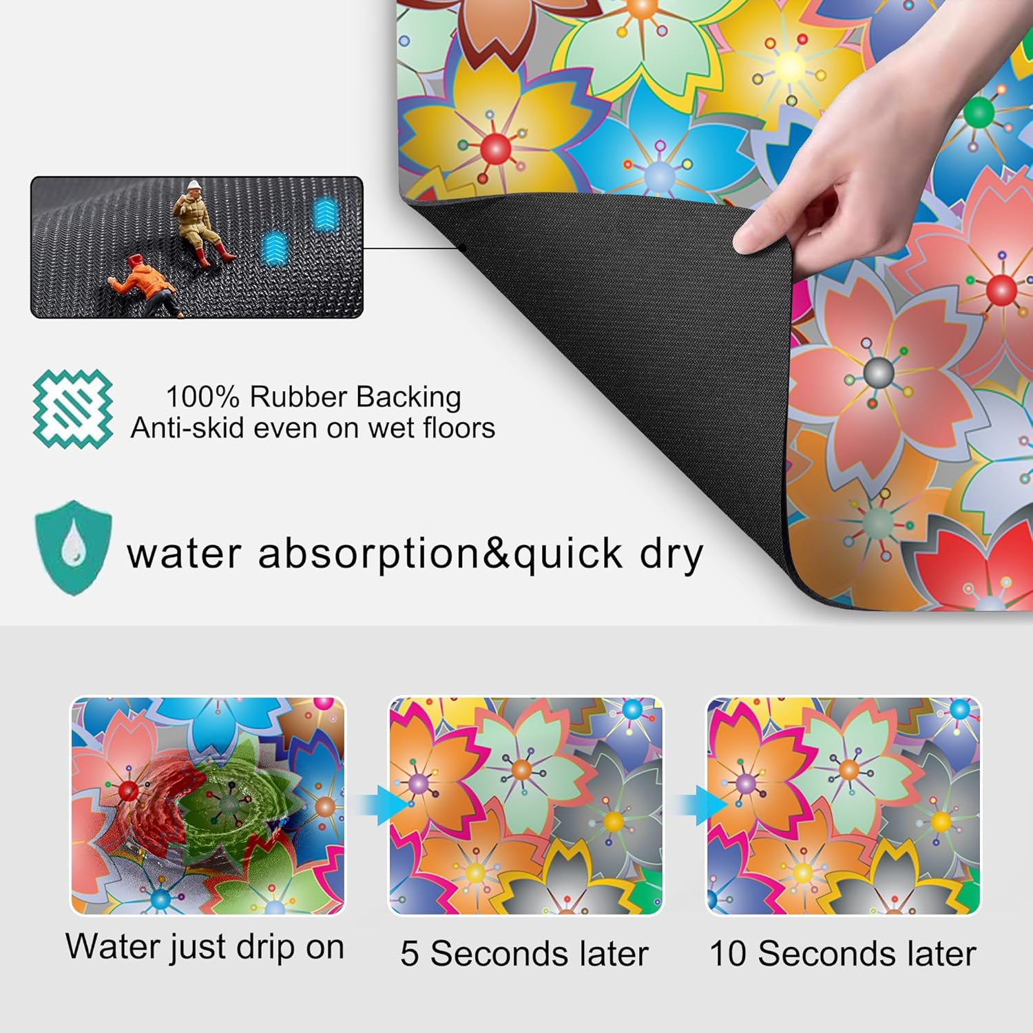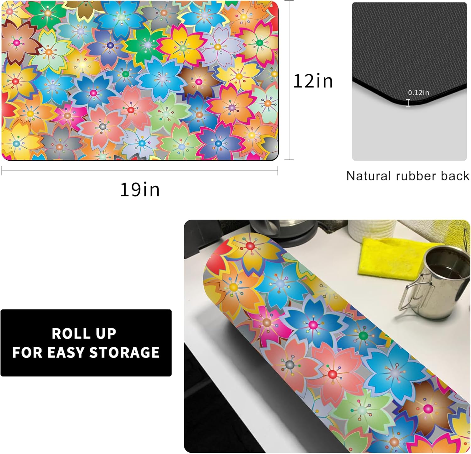 Coffee Mat for Kitchen Counter - Hide Stain Absorbent Dish Drying Mat, Rubber Coffee Bar Mats, Drying Pads, Accessories Fit Under Tea Pot, Cafe Maker, Espresso Machine, Dish Rack, 19"x12", Flowers