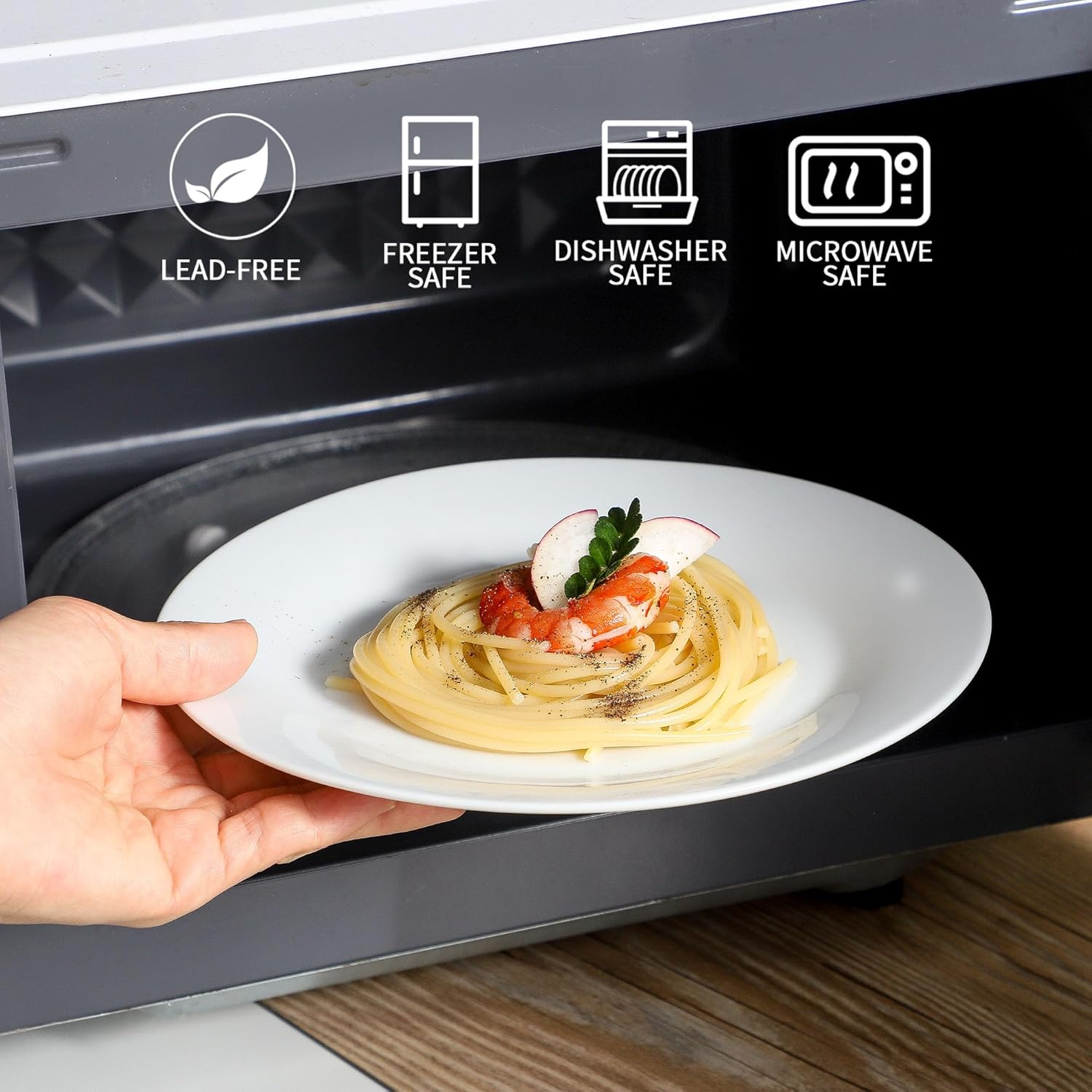 - Microwave and Dishwasher Safe: Durable porcelain, no cracks, chips, or flaws. You are able to warm food in the oven or microwave without worry about shattering. These dinner plates are very easy to clean because of the smooth surface. You can wash them with soap and hot water, or simply place them into your dishwasher.Also safe for dishwasher