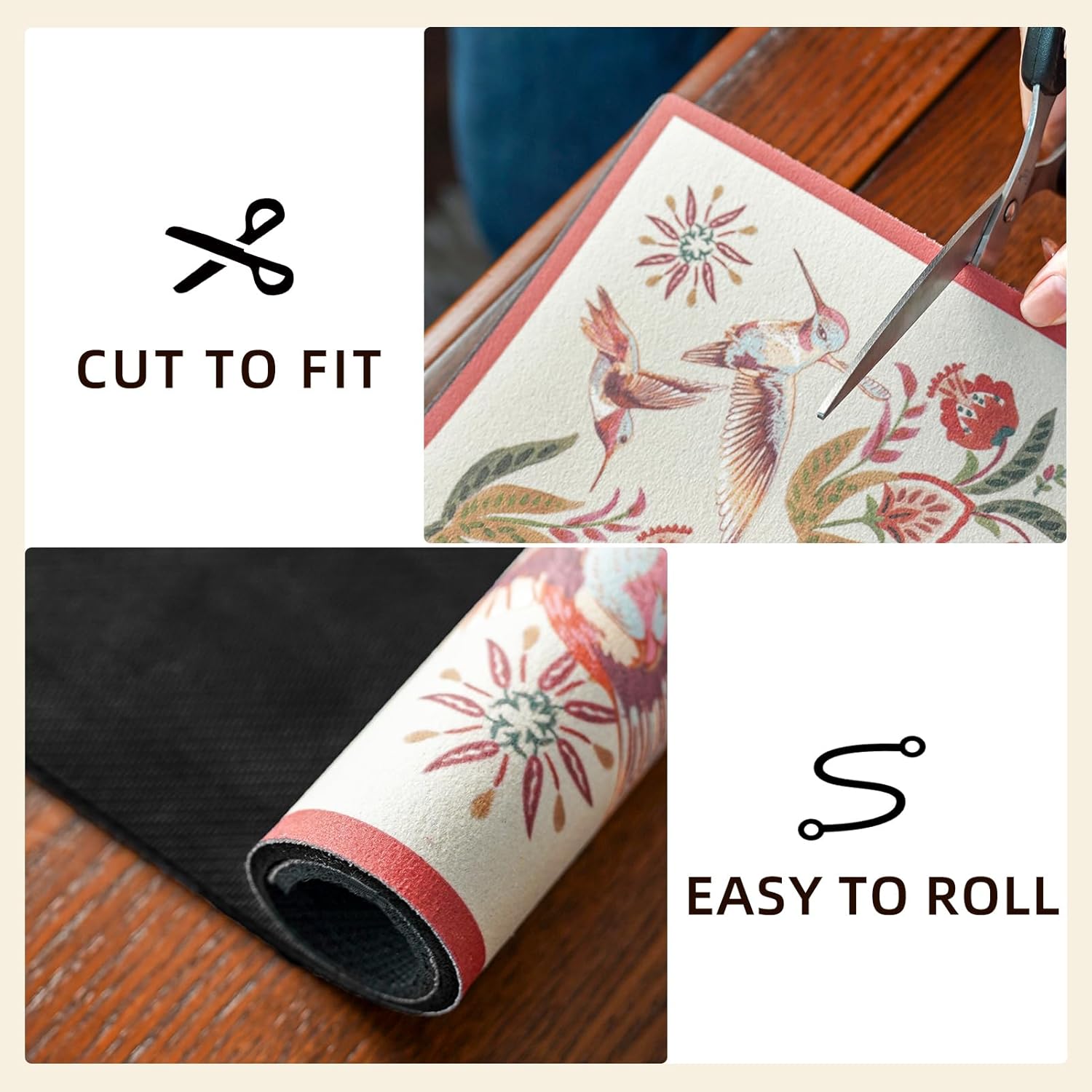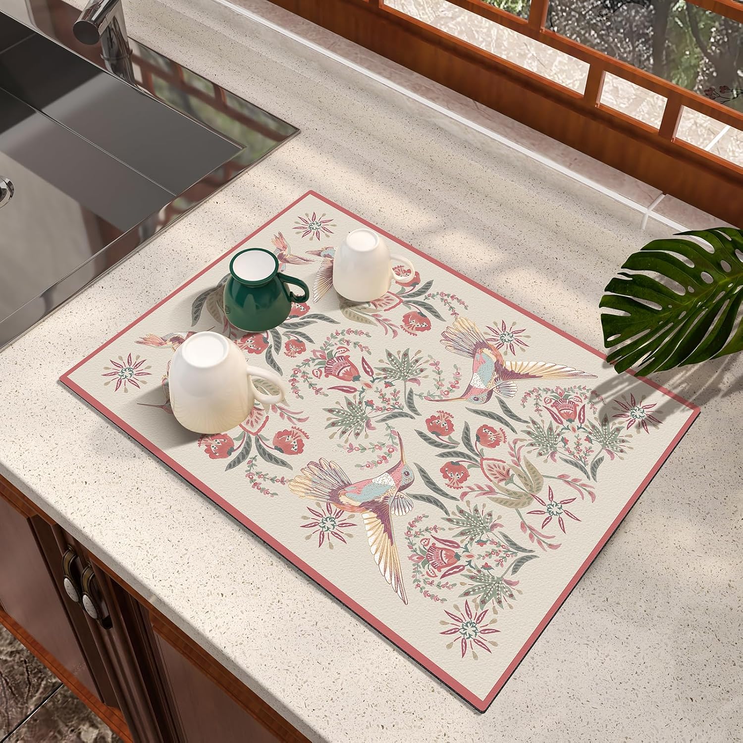 Dish Drying Mat Coffee Mat Rubber Backed Soft Silicone Dish Drying Mat for Kitchen Counter or Sink for Kitchen Bathroom Coffee Bar (Birds and Flowers, 16 x 24 Inches)