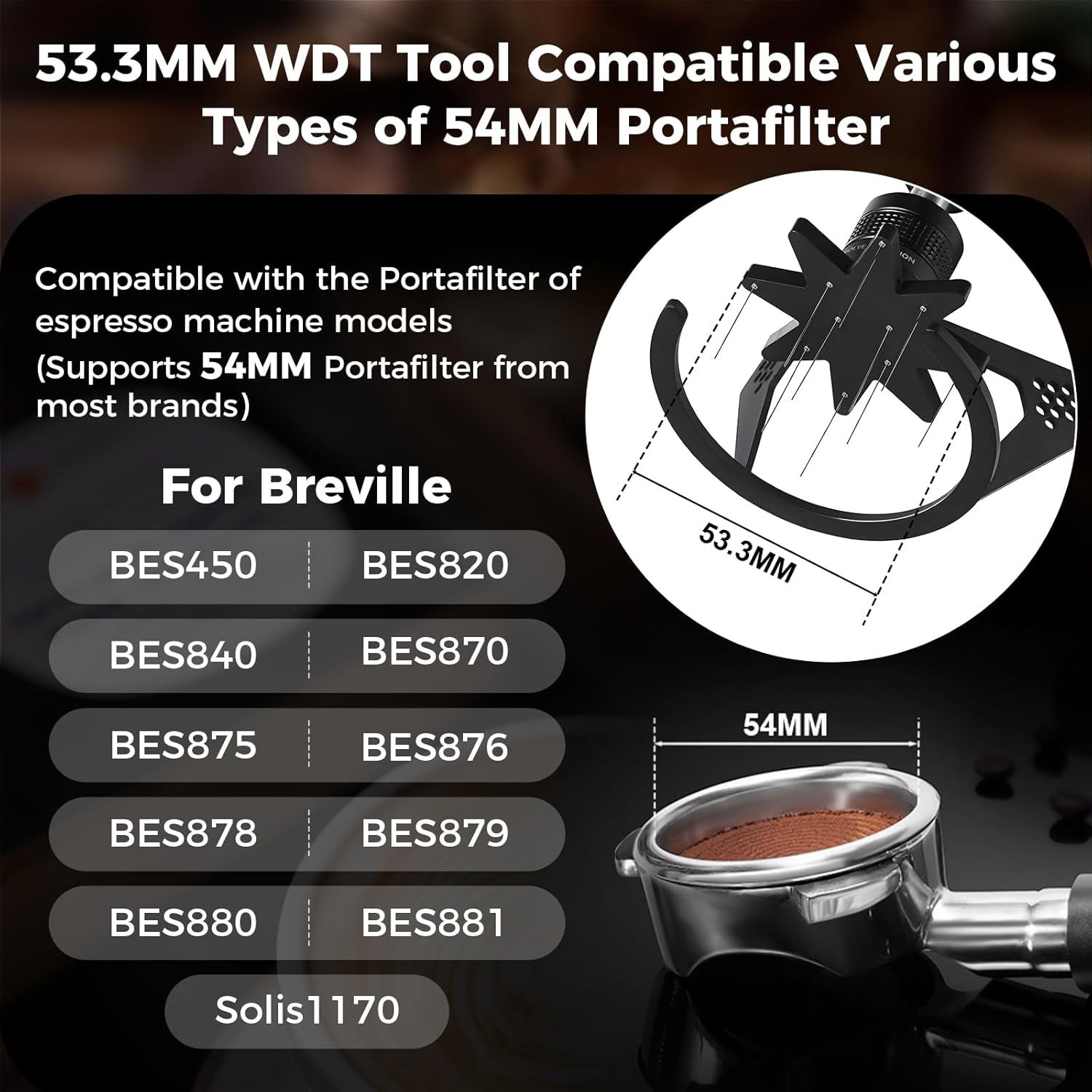- Improve Consistency - With this WDT distribution tool, simply stir the ground coffee to break up clumps and enjoy a more even distribution before mashing. It's the perfect blend of rigidity and flexibility that makes making coffee aesthetically pleasing.The wdt tool espresso 54mm compatible with various espresso machines, such as Breville BES870/BES875/BES878/BES880 series
