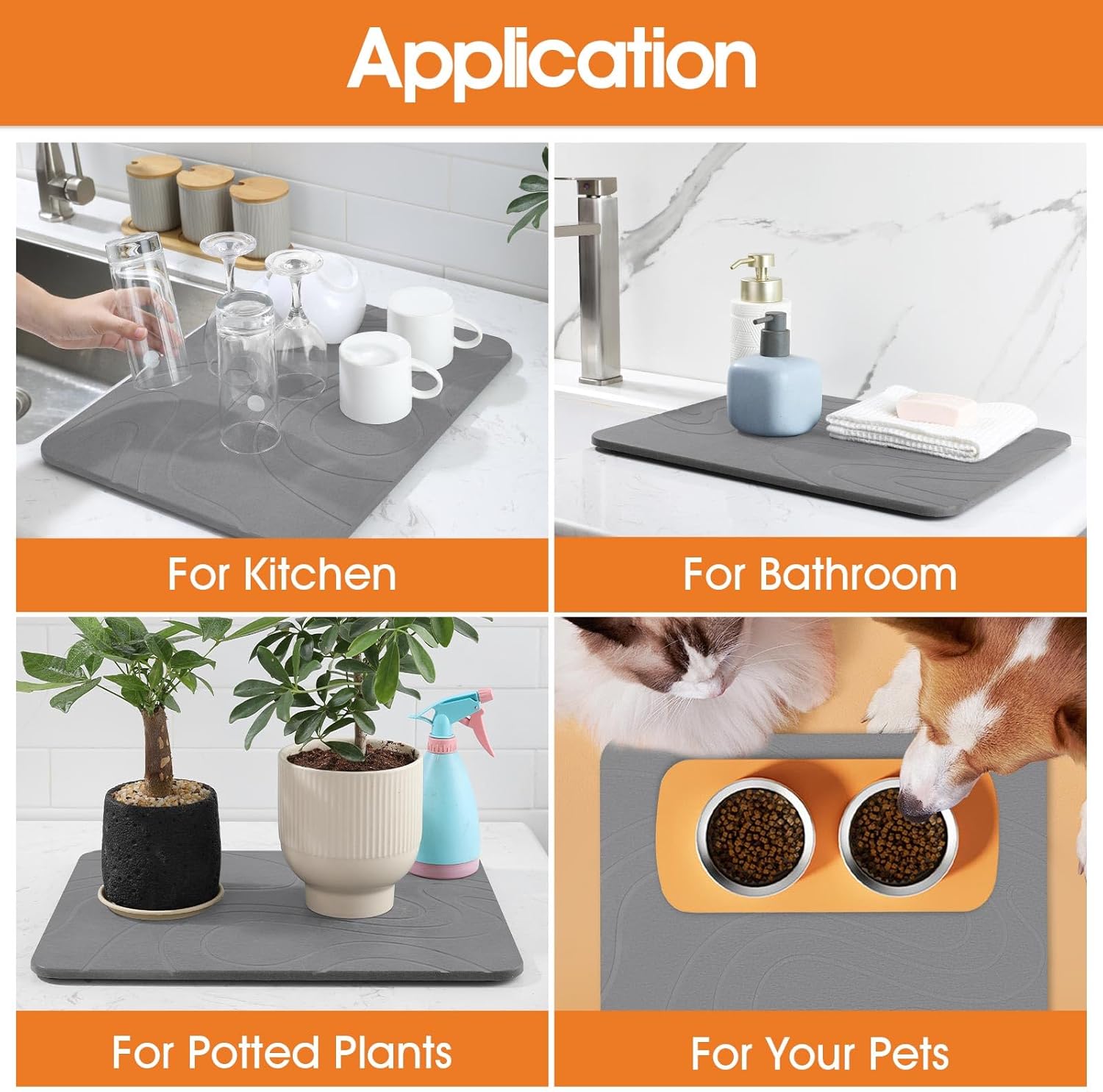 - ๐๐ฎ๐ฅ๐ญ๐ข-๐๐ฎ๐ซ๐ฉ๐จ๐ฌ๐: This diatomaceous mat is not only perfect for drying dishes but also ideal for holding vegetables, fruits, potted plants, and pet bowls, ensuring your home remains clean and organized