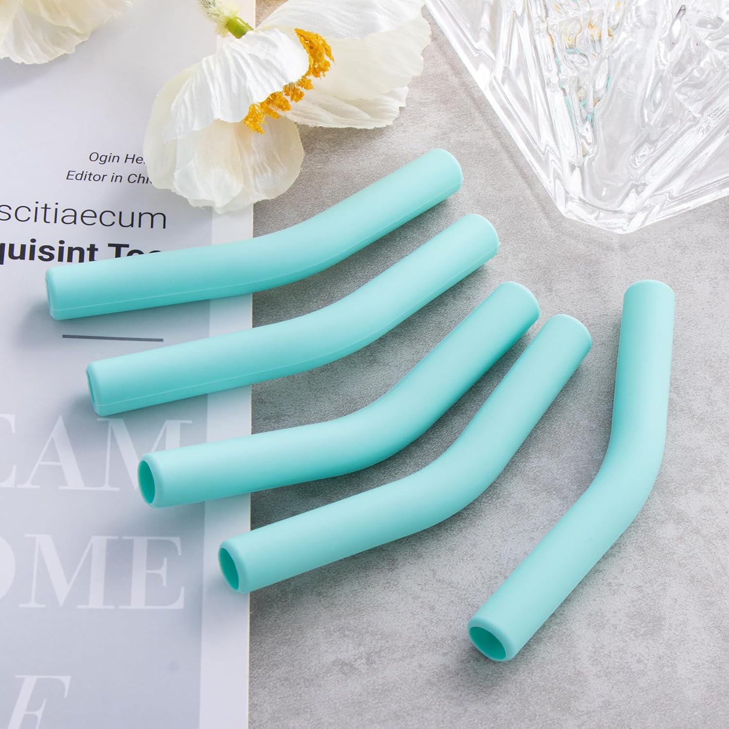 6Pcs Metal Straw Silicone Tips 5/16 IN Wide(8mm Outer Diameter) Food Grade Rubber Flex Elbow Straw Covers Replacement Tip for Stainless Steel Metal Straws,Green