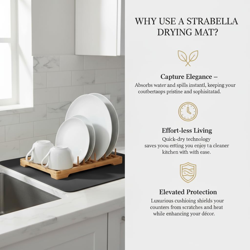 - EXCEPTIONAL ABSORBENCY: Experience the superior absorbent power of our Dish Drying Mat, designed to quickly soak up moisture from freshly washed dishes, ensuring a faster and more efficient drying process.