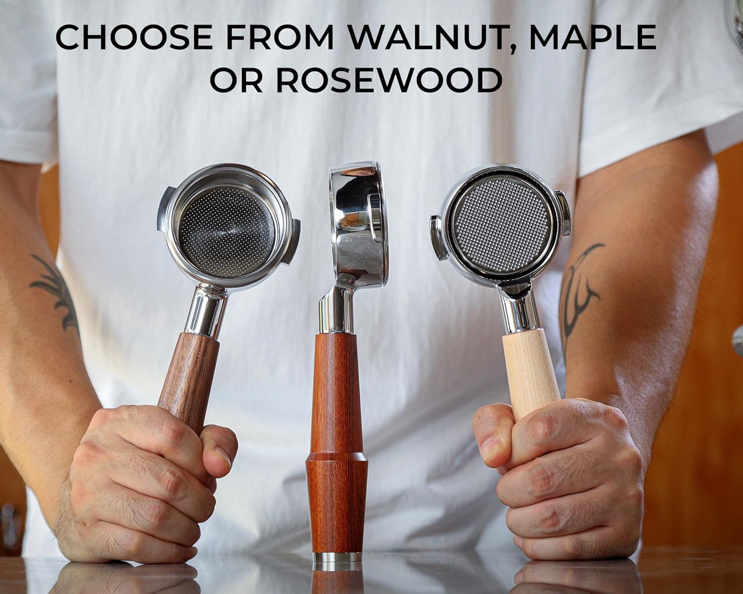 58mm Bottomless Portafilter for E61 Group Head | Professional Barista-Grade Naked Portafilter | Compatible with Rocket, Lelit, Ascaso, Profitec, ECM, Flair 58 & More (Walnut)